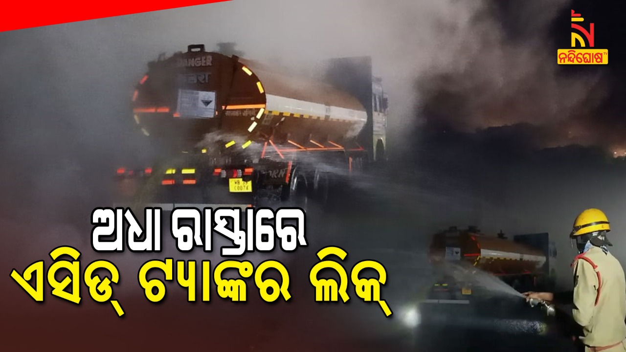 ରାସ୍ତା ମଝିରେ ଏସିଡ୍ ଟ୍ୟାଙ୍କର ଲିକ, ଉଦ୍ୟମ ଜାରି ରଖିଛି ଅଗ୍ନିଶମ ଟିମ୍