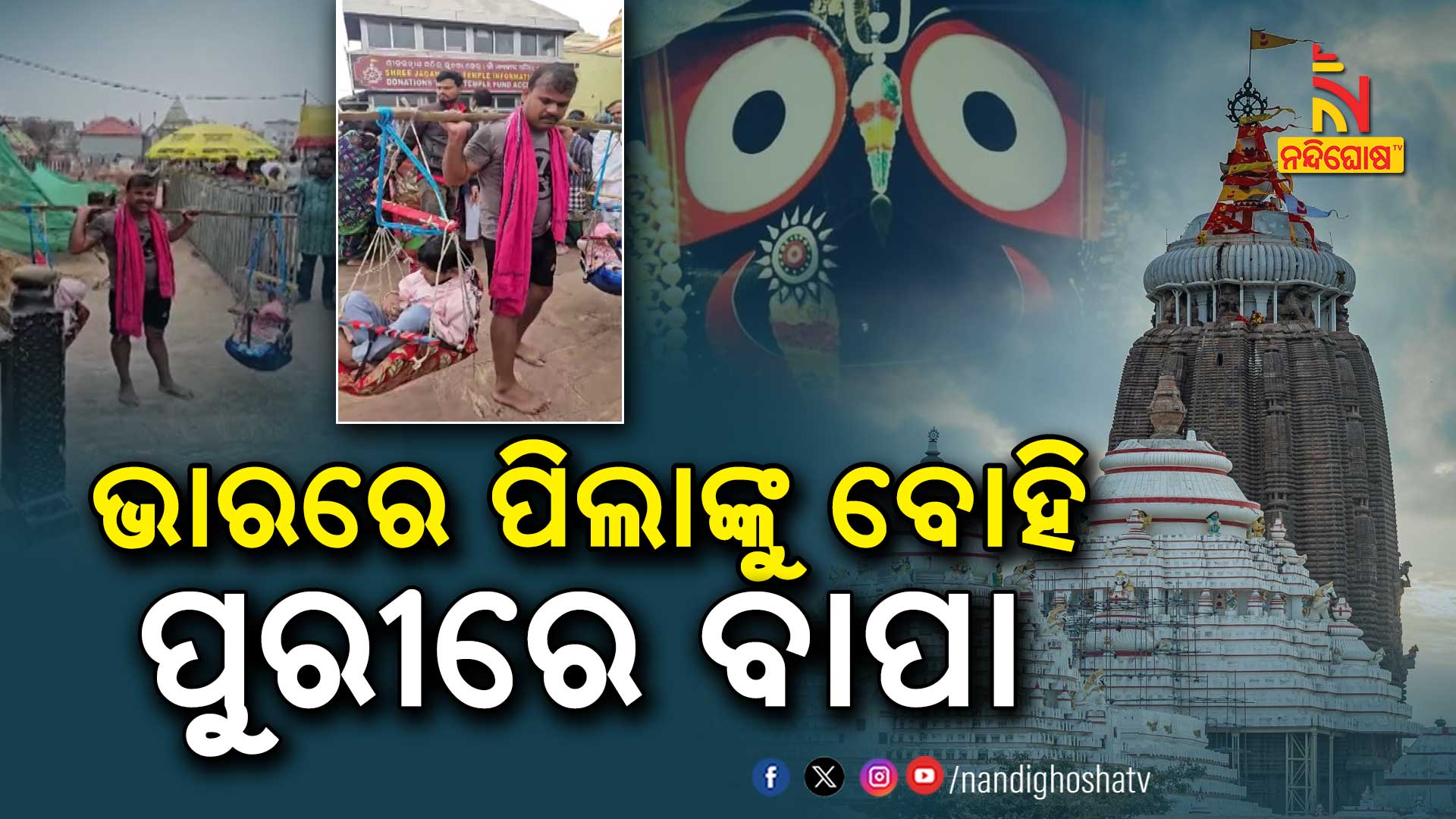 ଭାରରେ ଦୁଇ ପିଲାଙ୍କୁ ବସାଇ ବାପା ଜଣଙ୍କ ଶ୍ରୀକ୍ଷେତ୍ରରେ ପହଞ୍ଚିଛନ୍ତି । ପିଲାଙ୍କୁ ମହାପ୍ରଭୁଙ୍କ ଦର୍ଶନ କରାଇବେ । ଜଟଣୀକୁ ଚାଲି ଚାଲି ଆସି ପୁରୀରେ ପହଞ୍ଚିଛନ୍ତି କୁସୁମାଟି ଛଣଘର ଅଂଚଳର ଅଜୟ ଖମାରି । ମାନସିକ ପୂରଣ ପାଇଁ ସେ ଭାରରେ ପିଲାଙ୍କୁ ବୋହି ପୁରୀ ଆସିଥିବା ଜଣାପଡ଼ିଛି ।