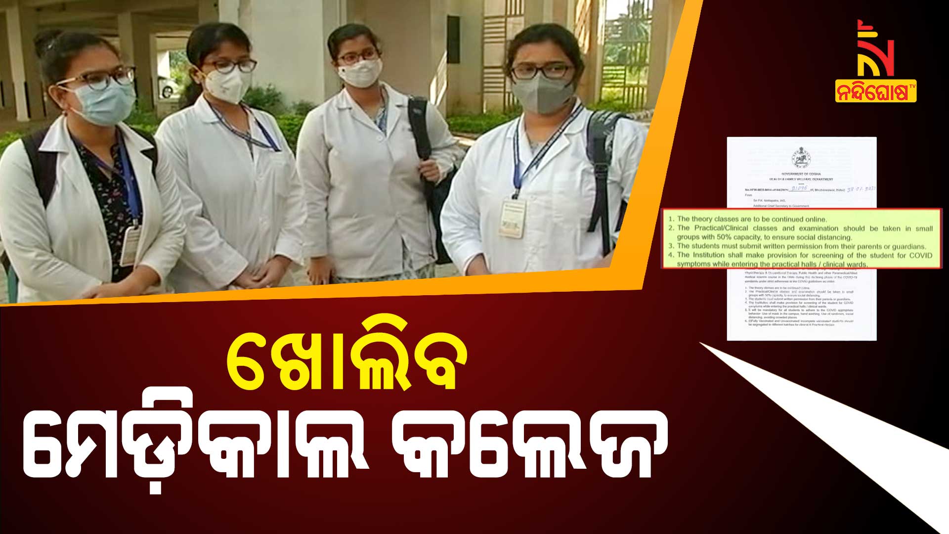 ଭୁବନେଶ୍ୱର: ଖୋଲିବ ରାଜ୍ୟର ସମସ୍ତ ମେଡିକାଲ କଲେଜ । ଅନ୍ୟାନ୍ୟ ଚିକିତ୍ସା ବିଜ୍ଞାନ ଅନୁଷ୍ଠାନ ବି ଖୋଲିବ । ନର୍ସିଂ ହୋମ୍, ଫାର୍ମାସୀ, ଫିଜିଓଥେରାପୀ କଲେଜ ଖୋଲିବା ନେଇ ରାଜ୍ୟ ସରକାରଙ୍କ ଅତିରିକ୍ତ ସଚିବ ପିକେ ମହାପାତ୍ର ଡିଏମଇଟିକୁ ଚିଠି ଲେଖିଛନ୍ତି । କୋଭିଡ୍ ଗାଇଡଲାଇନ ଅନୁସାରେ ସମସ୍ତ କଲେଜ ଖୋଲାଯିବ । ୫୦% ପିଲାଙ୍କୁ ନେଇ ହେବ ପ୍ରାକ୍ଟିକାଲ ଓ କ୍ଲିନିକାଲ କ୍ଲାସ । କିନ୍ତୁ ଅନଲାଇନ ମାଧ୍ୟମରେ ଥିଓରୀ କ୍ଲାସ ଚାଲିବ ।