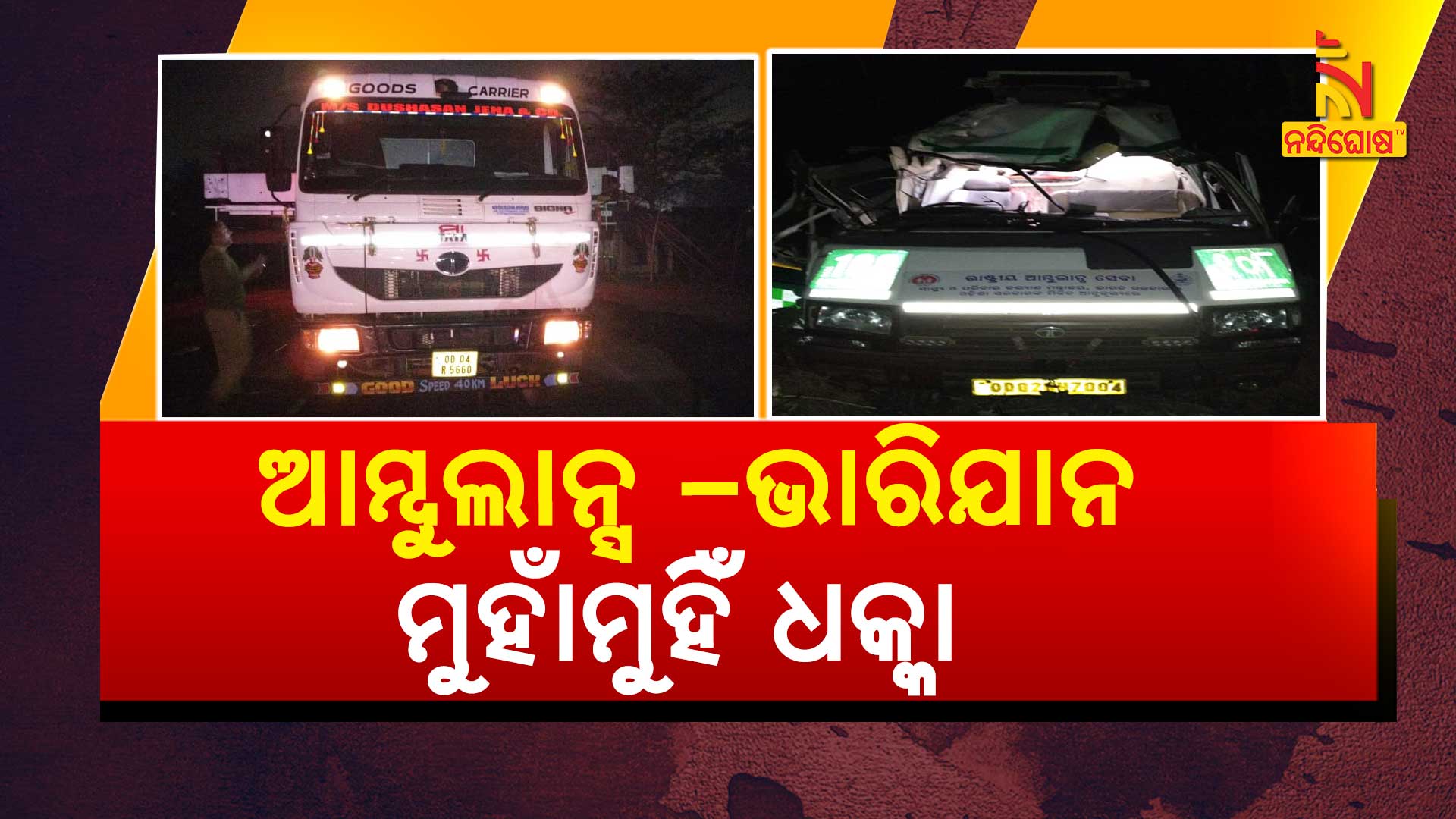 ଜଗତସିଂହପୁର: କଟକ ପାରଦୀପ ରାସ୍ତାର ଜଇପୁରରେ ଦୁର୍ଘଟଣା। ମଣିଜଙ୍ଗା ଗୋଷ୍ଠୀ ସ୍ବାସ୍ଥ୍ୟ କେନ୍ଦ୍ରରୁ ଏକ ଗୁରୁତର ରୋଗୀକୁ ୧୦୮ ଆମ୍ବୁଲାନ୍ସରେ ଅଣାଯାଉଥିବା ବେଳେ ଏକ ଭାରି ଯାନ ସହ ମୁହାଁମୁହିଁ ଧକ୍କା ହୋଇଛି ।