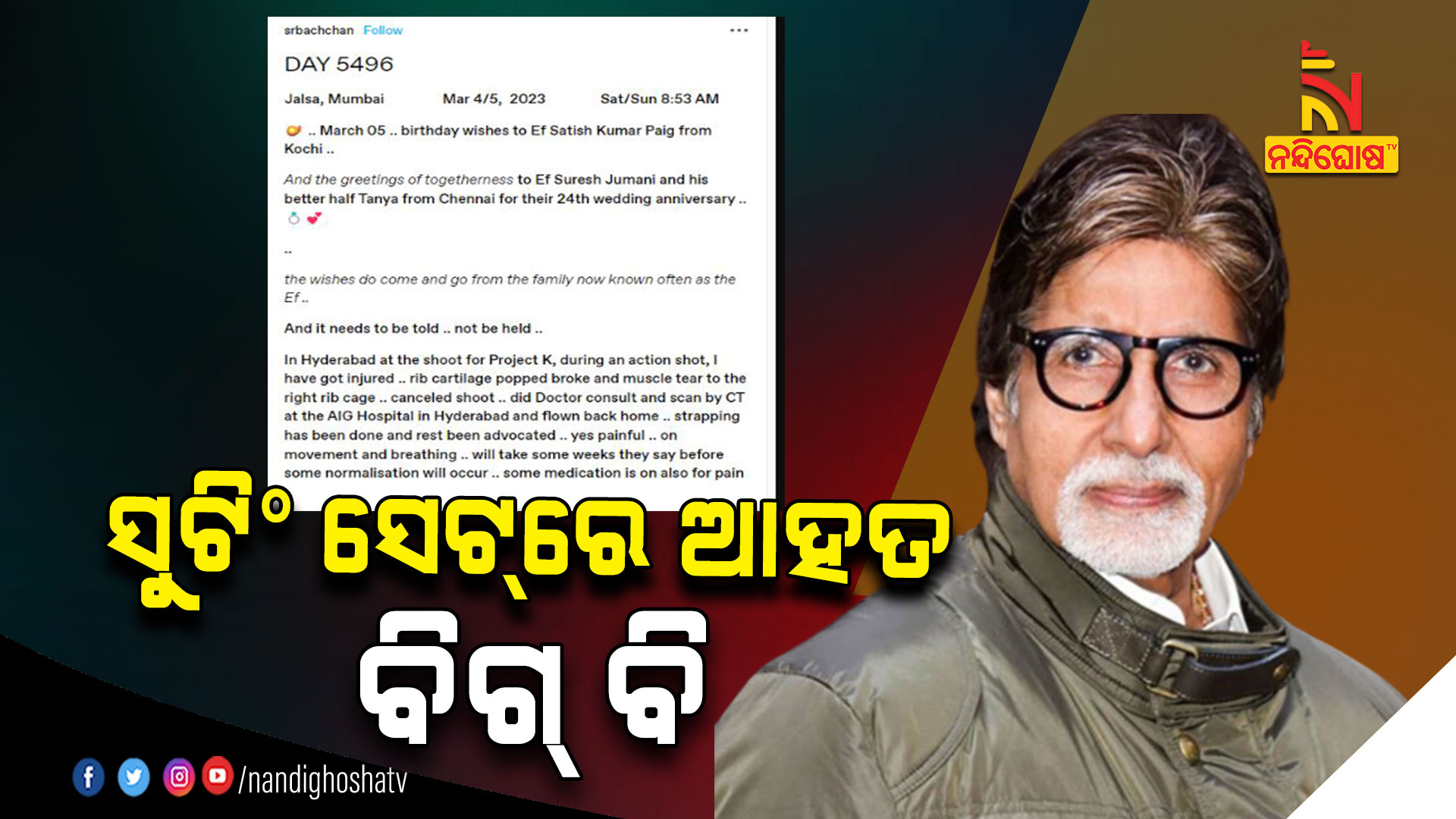 ଏନେଇ ବିଗ୍ ବି ନିଜ ବ୍ଲଗରେ ସୂଚନା ଦେଇଛନ୍ତି । ସୁଟିଂ ବାତିଲ ହୋଇଥିବା ବେଳେ ଡାକ୍ତରଙ୍କ ପରାମର୍ଶ କ୍ରମେ ସେ ବିଶ୍ରାମ ନେଉଛନ୍ତି ।