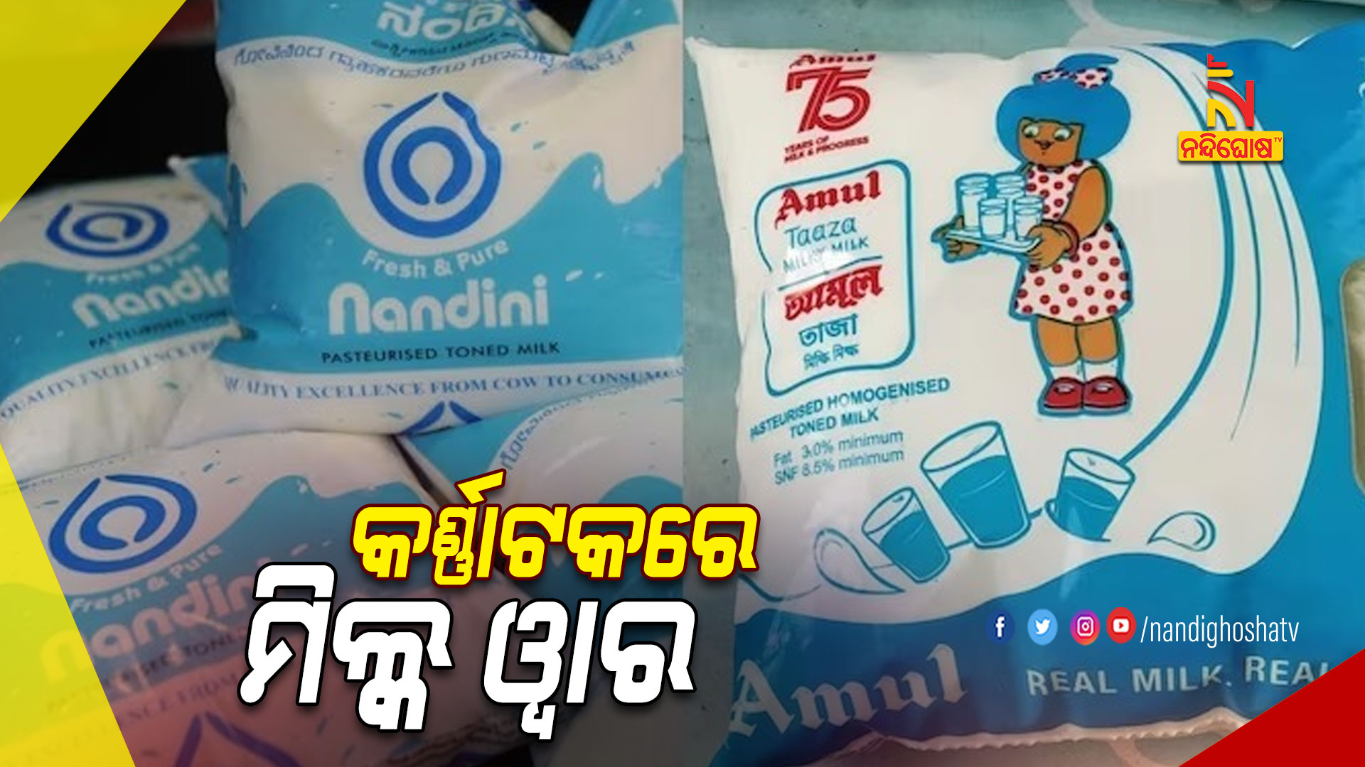 ତିନି ଦିନ ତଳେ ଗୁଜରାଟର ସମବାୟ ସମିତି ଅମୁଲ ବେଙ୍ଗାଲୁରୁରେ ପ୍ରବେଶ କରିବ ବୋଲି ଟୁଇଟରେ ଅବଗତ କରାଇଥିଲା । କର୍ଣ୍ଣାଟକ ପିସିସି ସଭାପତି ଡି.କେ.ଶିବକୁମାର କହିଛନ୍ତି- ଆମ ଅଧିକାର, ଜମି, ମାଟି, ଜଳ ଓ ଦୁଗ୍ଧ ସୁରକ୍ଷିତ ରହୁ । ଆମେ ଗୁଜରାଟ ମଡେଲ ଚାହୁଁନା । ଆମର ଏଠାରେ କର୍ଣ୍ଣାଟକ ମଡେଲ ରହିଛି । ରାଜ୍ୟର ନିଜସ୍ବ ଦୁଗ୍ଧ କମ୍ପାନି ନନ୍ଦିନୀକୁ ଶେଷ କରିଦେବାକୁ ମୁଖ୍ୟମନ୍ତ୍ରୀ ବାସବରାଜ ବୋମାଇ ଚାହୁଁଛନ୍ତି ବୋଲି ଅଭିଯୋଗ କରିଛନ୍ତି ବିରୋଧୀ । ତେଣେ ପୂର୍ବତନ ମୁଖ୍ୟମନ୍ତ୍ରୀ ସିଦ୍ଧରମୈୟା କହିଛନ୍ତି- ସମସ୍ତ କନ୍ନଡ ଭାଷାଭାଷୀ ଲୋକ ଅମୁଲଜାତ ସାମଗ୍ରୀ ନକିଣିବା ଲାଗି ଶପଥ ନିଅନ୍ତୁ । ତେଣେ ମୁଖ୍ୟମନ୍ତ୍ରୀ ବାସବରାଜ ବୋମାଇ କହିଛନ୍ତି-କିଛି ଦିନ ମଧ୍ୟରେ ଦେଶରେ ନମ୍ବର ଓ୍ବାନ ବ୍ରାଣ୍ଡ ହେବ ନନ୍ଦିନୀ । ଅନ୍ୟ ରାଜ୍ୟରେ ବି ନନ୍ଦିନୀ କମ୍ପାନୀ ଦ୍ବାରା ପ୍ରସ୍ତୁତ କ୍ଷୀର ବିକ୍ରି କରାଯାଉଛି । ଅମୁଲ ପ୍ରତି ଭୟ କରିବାର କାରଣ ନାହିଁ ।