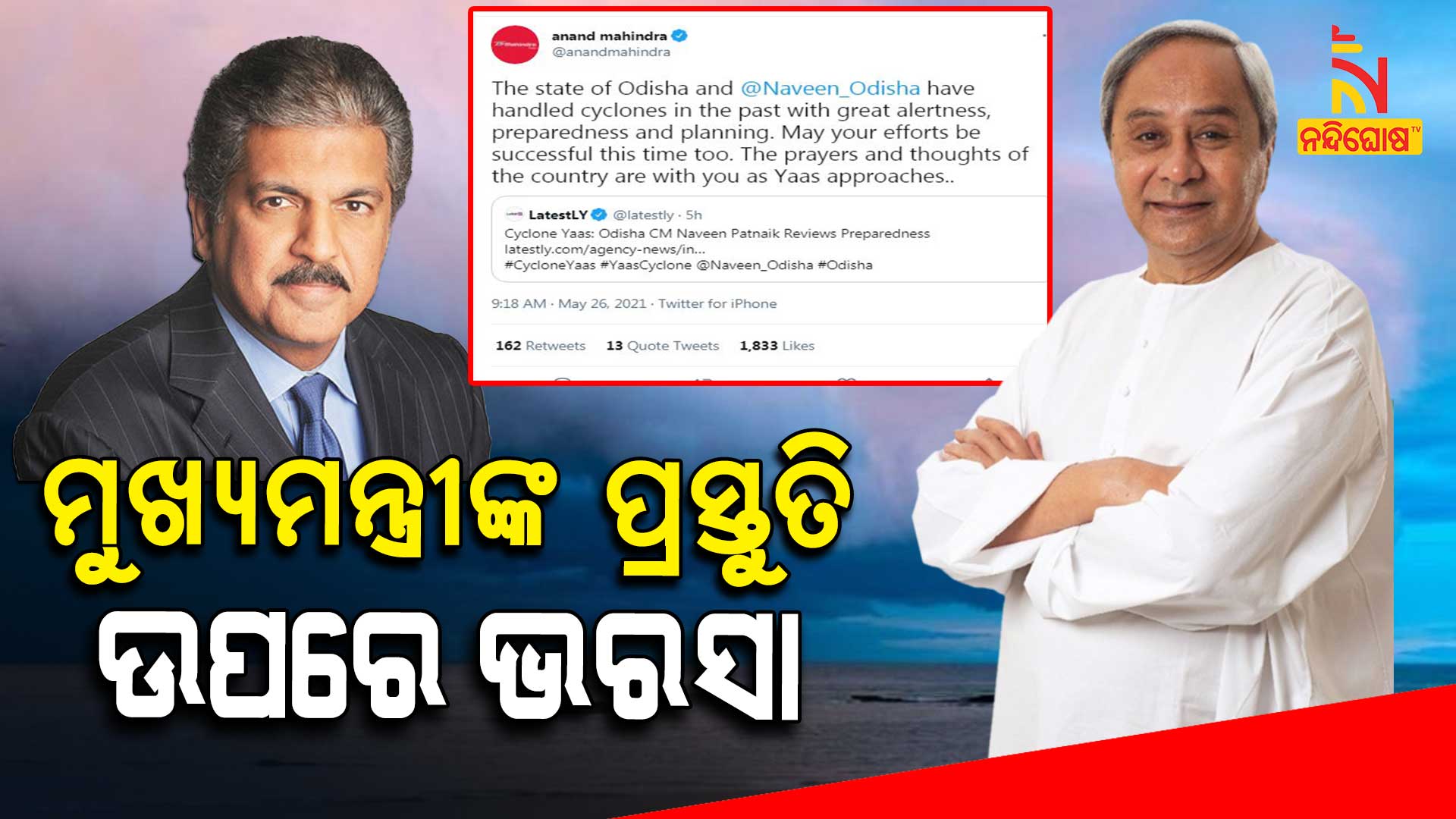 ଭୁବନେଶ୍ୱର: ପୁଣି ଏକ ବାତ୍ୟାର ସମ୍ମୁଖୀନ ହୋଇଛି ଓଡ଼ିଶା । ପୂର୍ବ ଅଭିଜ୍ଞତାକୁ ପାଥେୟ କରି ଏହାର ମୁକାବିଲା ନେଇ ଜୋରଦାର ପ୍ରୟାସ ଚଳାଇଛି ରାଜ୍ୟ । ଫାଇଲିନ୍, ହୁଦ୍ହୁଦ, ତିତଲି, ଅମ୍ଫାନ, ଫୋନି ପରେ ଏବେ ୟାସ୍କୁ ସାମ୍ନା କରୁଛି ରାଜ୍ୟ । ଆଉ ଏହି ବାତ୍ୟା ମୁକାବିଲାର ମଙ୍ଗ ଧରିଛନ୍ତି ଖୋଦ୍ ମୁଖ୍ୟମନ୍ତ୍ରୀ ନବୀନ ପଟ୍ଟନାୟକ । ଘନ ଘନ ବୈଠକ ସାଙ୍ଗକୁ ପ୍ରସ୍ତୁତିର ସମୀକ୍ଷା କରିଛନ୍ତି ମୁଖ୍ୟମନ୍ତ୍ରୀ । ଆଉ ମୁଖ୍ୟମନ୍ତ୍ରୀଙ୍କ ଏଭଳି ପ୍ରସ୍ତୁତି ଉପରେ ଆସ୍ଥା ପ୍ରକଟ କରିଛନ୍ତି ବିଶିଷ୍ଟ ଶିଳ୍ପପତି ଆନନ୍ଦ ମହିନ୍ଦ୍ରା । ବାତ୍ୟା ମୁକାବିଲାର ନେଇ ପ୍ରସ୍ତୁତି ଓ ଯୋଜନାକୁ ପ୍ରଶଂସା କରିଛି ଆନନ୍ଦ ମହିନ୍ଦ୍ରା । ସେ ଟ୍ୱିଟ୍ କରି ମୁଖ୍ୟମନ୍ତ୍ରୀଙ୍କ ବାତ୍ୟା ମୁକାବିଲା ସମ୍ପର୍କିତ ପଦକ୍ଷେପକୁ ପ୍ରଶଂସା କରିବା ସହ ତାଙ୍କ ମୁକାବିଲା ରଣନୀତି ଉପରେ ଆସ୍ଥା ପ୍ରକଟ କରିଛନ୍ତି । ସେ ଆହୁରି କହିଛନ୍ତି ଯେ, ପୂର୍ବରୁ ମଧ୍ୟ ରାଜ୍ୟ ସରକାର ଅତି ସତର୍କତାର ସହ ବାତ୍ୟା ମୁକାବିଲା କରିଥିବା ବେଳେ ଚଳିତଥର ମଧ୍ୟ ବାତ୍ୟା ମୁକାବିଲା ନେଇ ପ୍ରସ୍ତୁତି ସଫଳ ହେବ । ୟାସ୍ ମୁକାବିଲାରେ ସମ୍ପୂର୍ଣ୍ଣ ଦେଶ ଆପଣଙ୍କ ସହିତ ଥିବା ସେ କହିଛନ୍ତି ।