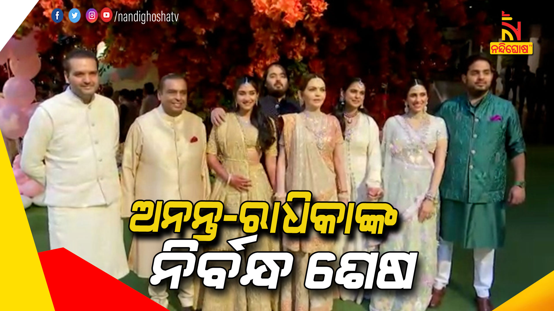 ମୁମ୍ବାଇ: ରାଧିକା ମର୍ଚ୍ଚାଣ୍ଟ ଏବଂ ଅନନ୍ତ ଅମ୍ବାନିଙ୍କ ମଧ୍ୟରେ ଗୁରୁବାର ପରିବାରବର୍ଗ ଏବଂ ବନ୍ଧୁବାନ୍ଦବଙ୍କ ଉପସ୍ଥିତିରେ ପୂର୍ଣ୍ଣ ରୀତି ନୀତି ଓ ବିଧି ଅନୁଯାୟୀ ବିବାହ ପୂର୍ବ ଆନୁଷ୍ଠାନିକ ନିର୍ବନ୍ଧ କାର୍ଯ୍ୟ ସମ୍ପନ୍ନ ହୋଇଛି । ଏହି ନିର୍ବନ୍ଧ କାର୍ଯ୍ୟ ମୁମ୍ବାଇ ସ୍ଥିତ ଅମ୍ବାନି ନିବାସରେ ଅନୁଷ୍ଠିତ ହୋଇଥିଲା । ଗୁଜୁରାଟୀ ହିନ୍ଦୁ ପରିବାରରେ ପିଢି ପ୍ରଚିଳତ ହୋଇଆସୁଥିବା ଶହ ଶହବର୍ଷ ପୂରାତନ ଗୋଲ୍ ଧନ ଏବଂ ଚୁନରୀ ବିଧି ଆଧି ପରମ୍ପରା ସମାରୋହ ସ୍ଥଳ ଏବଂ ପରିବାରିକ ମନ୍ଦିରରେ ଅତ୍ୟନ୍ତ ଆନନ୍ଦ ଉତ୍ସାହର ସହିତ ଆୟୋଜିତ ହୋଇଥିଲା ।
