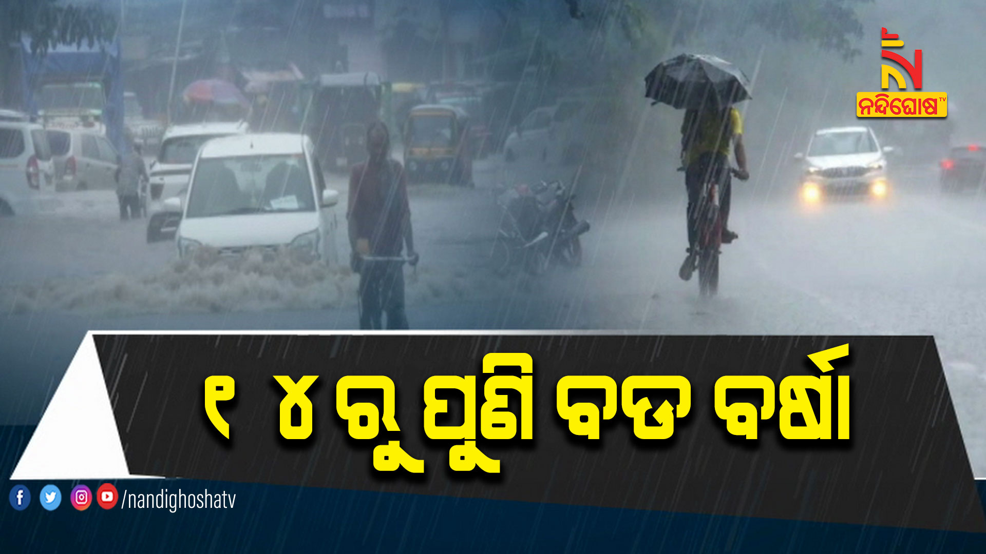 ପୁଣି ଆସନ୍ତା ୧୪ ରୁ ୧୭ ତାରିଖ ଯାଏଁ ରାଜ୍ୟରେ ବଡ଼ ବର୍ଷା ସମ୍ଭାବନା