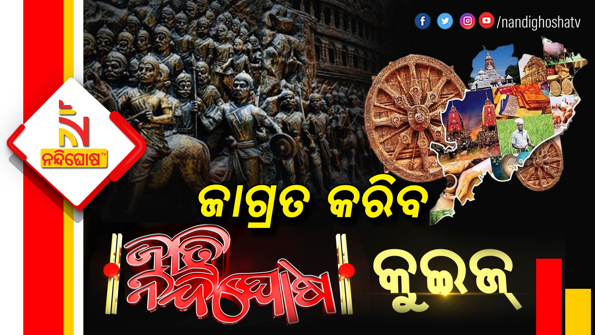 ରାଜ୍ୟବାସୀଙ୍କ ମଧ୍ୟରେ ଉତ୍କଳର ଇତିହାସକୁ ପୁନର୍ବାର ମନେ ପକାଇବା ନିମନ୍ତେ ପ୍ରତିଦିନ ଆମେ ପ୍ରଶ୍ନ ପଚାରିବୁ । ସାମାଜିକ ଗଣମାଧ୍ୟମ ଜରିଆରେ ଆମେ ଉତ୍ତର ଚାହିଁବୁ । ଯେଉଁ ବ୍ୟକ୍ତି ସଠିକ ଉତ୍ତର ପ୍ରଦାନ କରିବେ । ତାହାଙ୍କୁ ନନ୍ଦିଘୋଷ ଟିଭି ପକ୍ଷରୁ ପୁରସ୍କାର ପ୍ରଦାନ କରାଯିବ । ସେଥିପାଇଁ କାର୍ଯ୍ୟକ୍ରମର ନାଁ ରଖିଛୁ ‘ଜାତି ନନ୍ଦିଘୋଷ କୁଇଜ୍’ ପ୍ରଥମ ଦିନରେ ଆମେ ପଚାରିଛି ତିନୋଟି ପ୍ରଶ୍ନ ।