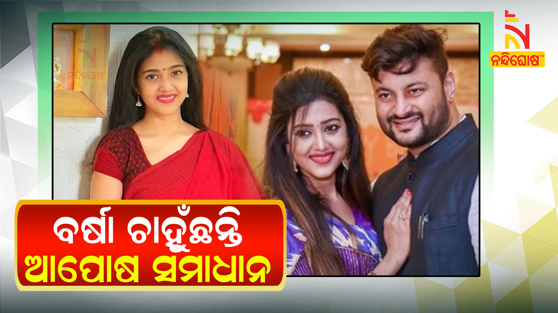 ଅନ୍ୟପଟେ ବର୍ଷା ଚାହୁଁଛନ୍ତି ଉଭୟଙ୍କ ମଧ୍ୟରେ ଆପୋଷ ସମାଧାନ ହୋଇଯାଉ । ଏହା କହିଛନ୍ତି ବର୍ଷାଙ୍କ ଓକିଲ ରାମକୃଷ୍ଣ ରଥ । କେବଳ ବର୍ଷା ନୁହଁନ୍ତି ଉଭୟଙ୍କ ଫ୍ୟାନ ମଧ୍ୟ ଚାହାଁନ୍ତି ଏହି ପାରିବାରିକ କନ୍ଦଳର ଆପୋଷ ସମାଧାନ ହୋଇଯାଉ ।
