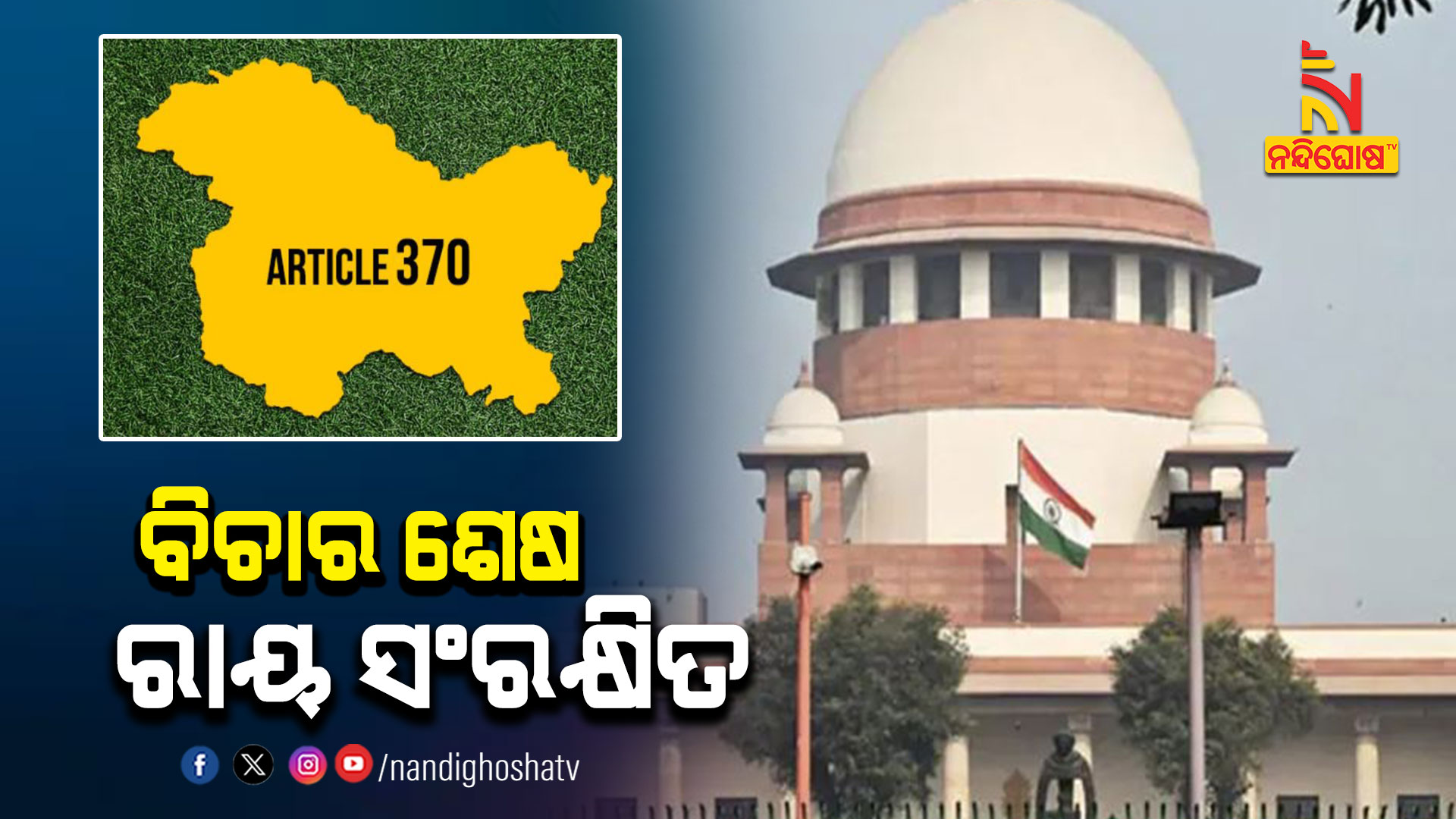 ନୂଆଦିଲ୍ଲୀ: ଧାରା ୩୭୦କୁ ନେଇ ହୋଇଥିବା ମାମଲାର ଶୁଣାଣି ସୁପ୍ରିମକୋର୍ଟରେ ଶେଷ ହୋଇଛି । କୋର୍ଟ ମାମଲାର ବିଚାର କରି ନିଷ୍ପତ୍ତିକୁ ସୁରକ୍ଷିତ ରଖିଛନ୍ତି । ୩୭୦ ଧାରା ହଟିବା ବିରୋଧରେ ହୋଇଥିବା ଆବେଦନର ବିଚାର କୋର୍ଟରେ ୧୬ ଦିନ ଧରି ଚାଲିଥିଲା ।