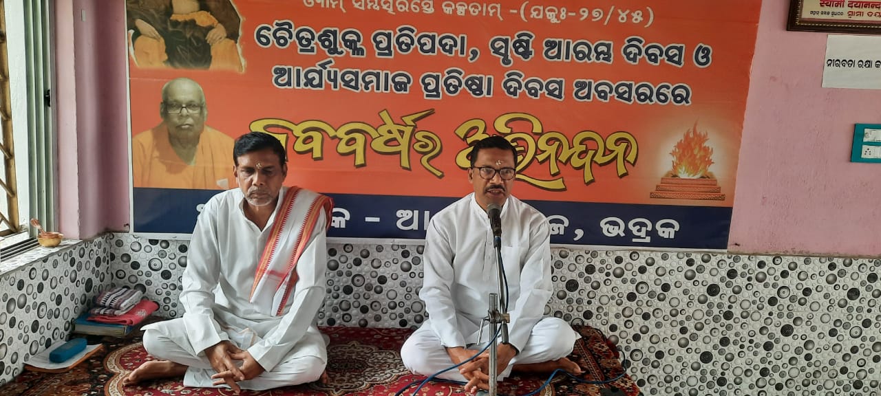 ଭଦ୍ରକ : ସୃଷ୍ଟି ନିର୍ମାଣର ପ୍ରଥମ ଦିବସ ଓ ଆର୍ଯ୍ୟ ସମାଜର ପ୍ରତିଷ୍ଠା ଦିବସ । ଚୈତ୍ର ଶୁକ୍ଳ ପ୍ରତିପଦାରେ ଆର୍ଯ୍ୟ ସମାଜ ଭଦ୍ରକ ପକ୍ଷରୁ ମହାସମାରୋହରେ ପାଳନ କରାଯାଇଛି । ବେଦ ପ୍ରବକ୍ତା ପଣ୍ଡିତ ବୀରେନ୍ଦ୍ର ପଣ୍ଡାଙ୍କ ପୌରହିତ୍ୟରେ ଅନୁଷ୍ଠାନରେ ପଣ୍ଡିତ ପଣ୍ଡା ସୃଷ୍ଟିର ଆଦ୍ୟ ଦିବସ ଓ ଆର୍ଯ୍ୟ ସମାଜର ମହତ୍ତ୍ଵ ବର୍ଣ୍ଣନା କରିଥିଲେ ଏହା ସହ ସମସ୍ତଙ୍କୁ ନବବର୍ଷର ଅଭିନନ୍ଦନ ଜଣାଇଥିଲେ । ସଭାପତି ସୁଶ୍ରୀ ବୀଣାପାଣି ପଣ୍ଡା ଓ ସହ ଆଚାର୍ଯ୍ୟ ଲକ୍ଷ୍ମୀଧର ପଣ୍ଡାଙ୍କ ଯଜମାନତ୍ବରେ ଯଜ୍ଞ କାର୍ଯ୍ୟ ସଂପର୍ଣ୍ଣ ପରେ ସମାଜର ସଦସ୍ୟା ସ୍ମିତାରାଣୀ ନାୟକ, ସୁସଂଧ୍ୟା ପଣ୍ଡା, ମଧୁମିତା ସାହୁ, ନର୍ମଦା ନାୟକ ଓ ସଂସ୍କୃତି ପଣ୍ଡା ବେଦମନ୍ତ୍ର ପାଠ ଓ ଭଜନ ପରିବେଷଣ କରିଥିଲେ । ଲକ୍ଷ୍ମୀଧର ପଣ୍ଡା ଆର୍ଯ୍ୟ ସମାଜର ସଂସ୍କାର ଦିଗ ଓ ବୈଚାରିକ ଦିଗ ସଂପର୍କରେ ବିସ୍ତୃତ ଆଲୋଚନା କରିଥିଲେ । ସଂପାଦକ ସୁଧୀର ମୁଦୁଲି ସୃଷ୍ଟି ଆରମ୍ଭ ଦିବସରେ ମହତ୍ତ୍ଵ ବ୍ୟାଖ୍ୟା କରିଥିଲେ । ରବି ନାରାୟଣ ଲେଙ୍କାଙ୍କ ପରିଚାଳନାରେ ଅନୁଷ୍ଠିତ କାର୍ଯ୍ୟକ୍ରମରେ ଭଦ୍ରକର ବହୁ ବିଶିଷ୍ଟ ବ୍ୟକ୍ତି ତଥା ବିଦ୍ବାନ ବିଦୂଷୀ ଓ ଆର୍ଯ୍ୟ ସମାଜର ସଦସ୍ୟ, ସଦସ୍ୟା ଉପସ୍ଥିତ ଥିଲେ । ଏହି ଅବସରରେ ସମସ୍ତେ ସମସ୍ତ ଆତ୍ମୀୟ ତଥା ପ୍ରିୟମାନଙ୍କୁ ନବବର୍ଷର ଅଭିନନ୍ଦନ ଜଣାଇଥିଲେ ।