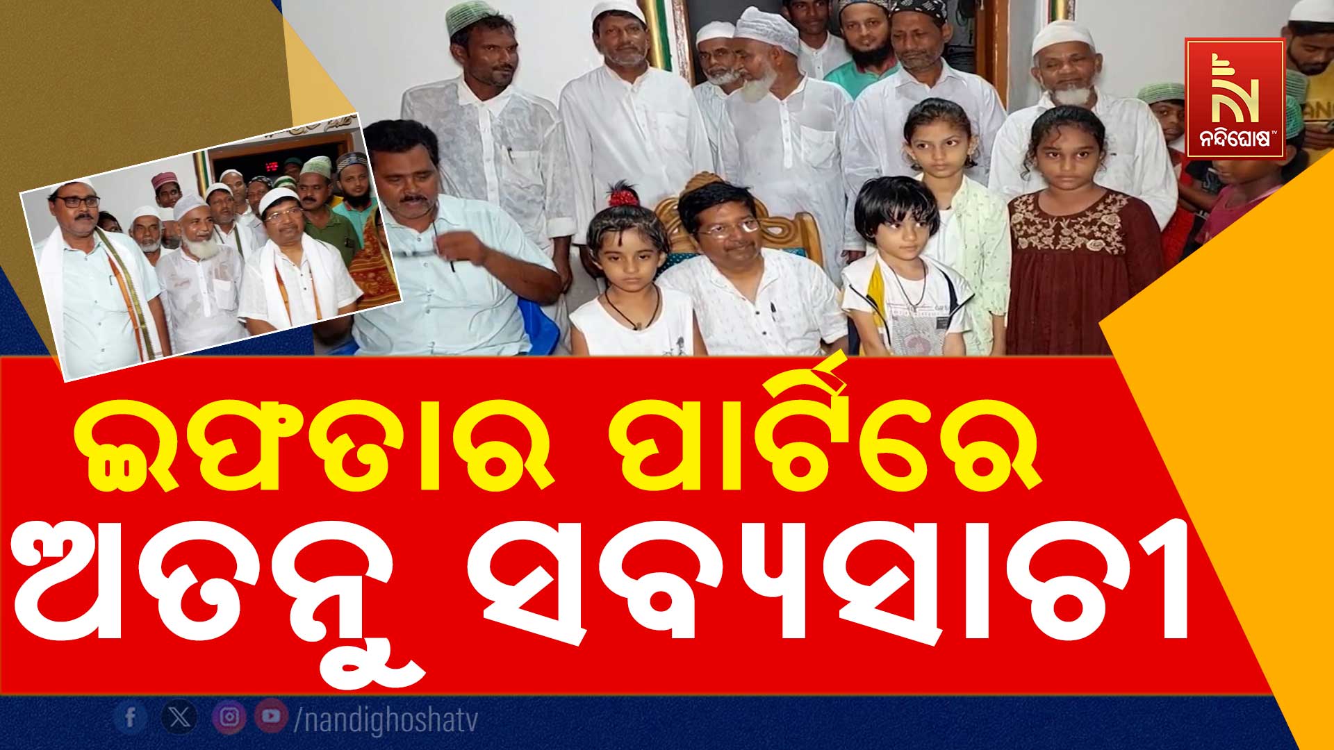 ମହାକାଳପଡ଼ା: ଇଫତାର ପାର୍ଟିରେ ଯୋଗଦେଲେ ମନ୍ତ୍ରୀ ଅତନୁ ସବ୍ୟସାଚୀ ନାୟକ। କେନ୍ଦ୍ରାପଡା ମହାକାଳପଡା ରାଜଗଡ଼ ଗାଁରେ ବସବାସ କରୁଥିବା ମୁସଲିମ ସମ୍ପ୍ରଦାୟର ଲୋକ କରିଥିଲେ ନିମନ୍ତ୍ରଣ। ରମଜାନ ମାସ ଚାଲିଥିବାରୁ ରାଜଗଡ଼ରେ ଥିବା ସୁନି ମସଜିଦରେ ଇଫତାର ପାର୍ଟିର ଆୟୋଜନ କରାଯାଇଥିଲା। ଏହି ଅବସରରେ ଅତନୁ ସବ୍ୟସାଚୀ ନାୟକ ରାଜଗଡ଼ ସୁନି ମସଜିଦରେ ପହଞ୍ଚି ମୁସଲିମ ସମ୍ପ୍ରଦାୟର ଭାଇ ମାନଙ୍କୁ ଭେଟି ଭଲ ମନ୍ଦ ପଚାରି ବୁଝିଥିଲେ l ଛୋଟରୁ ବଡ ପର୍ଯ୍ୟନ୍ତ ସମସ୍ତେ ଉପସ୍ଥିତ ରହି ଅତନୁ ସବ୍ୟସାଚୀଙ୍କୁ ସମ୍ବର୍ଦ୍ଧିତ କରିଥିଲେ।