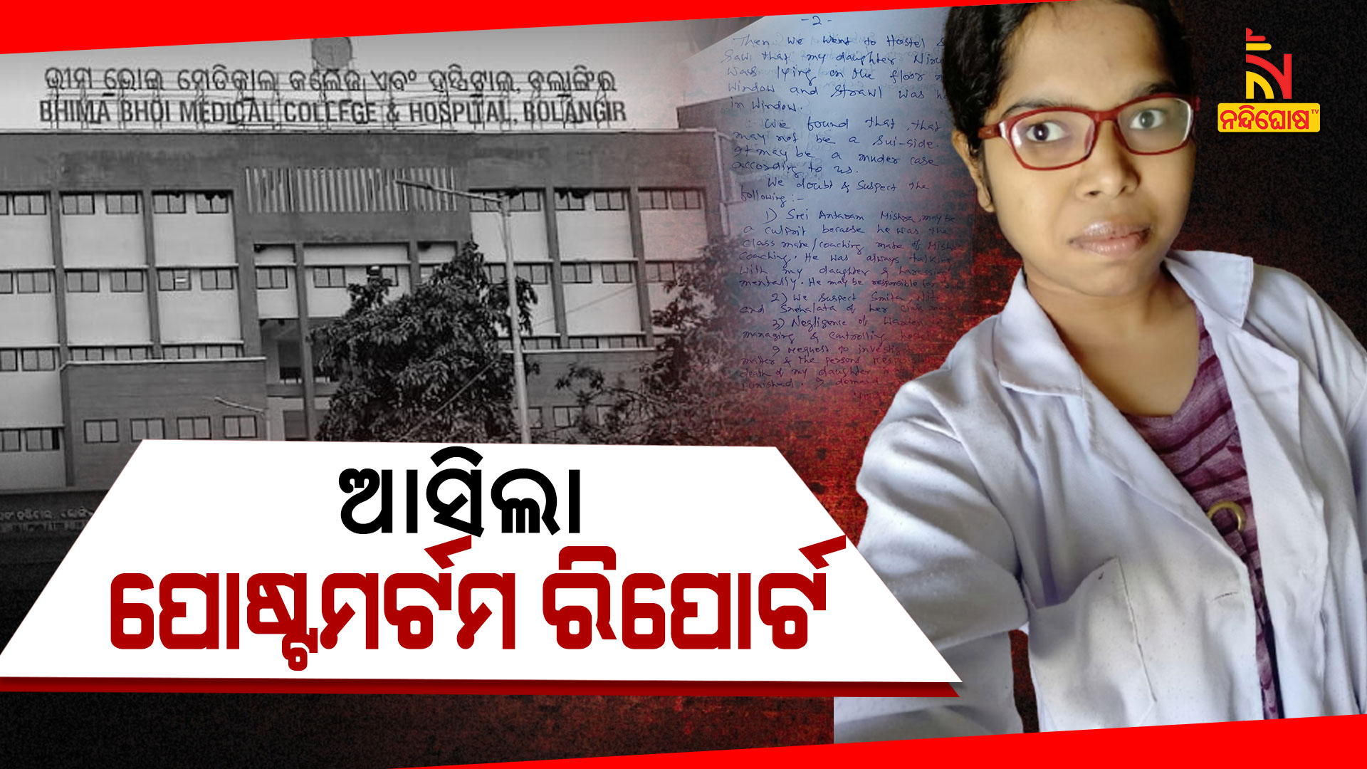 ବଲାଙ୍ଗିର: ଭୀମଭୋଇ ମେଡିକାଲ କଲେଜର ଦ୍ୱିତୀୟ ବର୍ଷ ଛାତ୍ରୀ ନିରୁପମା ନନ୍ଦଙ୍କ ସନ୍ଦେହଜନକ ମୃତ୍ୟୁ ଘଟଣା । ଆସିଲା ଶବ ବ୍ୟବଚ୍ଛେଦ ରିପୋର୍ଟ । ରାତି ପ୍ରାୟ ୧୨ଟାରୁ ୧୨ଟା ୧୮ମିନିଟ ଭିତରେ ନିରୁପମାଙ୍କ ମୃତ୍ୟୁ ହୋଇଥିବା ରିପୋର୍ଟରେ ଉଲ୍ଲେଖ କରାଯାଇଛି । ନିରୁପମାଙ୍କ ଦେହରେ ଅନ୍ୟ ସ୍ଥାନରେ କୋଣସି କ୍ଷତ ଚିହ୍ନ ନଥିବା ବେଳେ, ତାଙ୍କ ବେକର ହାଡ଼ ଭାଙ୍ଗିଛି । ଶବ ବ୍ୟବଚ୍ଛେଦ ରିପୋର୍ଟ ଆସିଥିବା ବେଳେ ଭିସେରା ରିପୋର୍ଟ ଆସିନାହିଁ । ଛାତ୍ରୀ ଜଣକ ମୃତ୍ୟୁ ପୂର୍ବରୁ କ’ଣ ଖାଇଥିଲେ ତାହା ଜଣା ପଡ଼ିନାହିଁ ।