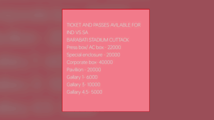 ଭାରତ-ଦକ୍ଷିଣ ଆଫ୍ରିକା ପ୍ରଥମ ଟି-୨୦ କଟକ ବାରବାଟୀ ଷ୍ଟାଡିୟମରେ ଅନୁଷ୍ଠିତ ହେବାକୁ ଯାଉଛି । ଆସନ୍ତା ୯ ତାରିଖରେ ମ୍ୟାଚ ଅନୁଷ୍ଠିତ ହେବାକୁ ଥିବାବେଳେ ଆଜିଠାରୁ ଅନଲାଇନରେ ଟିକେଟ ମିଳିବ ବୋଲି ପ୍ରେସମିଟରେ କୁହାଯାଇଥିଲା । ଓଡ଼ିଶାର କ୍ରିକେଟପ୍ରେମୀମାନେ ମ୍ୟାଚ ଦେଖିବା ପାଇଁ ଆଗ୍ରହୀ ରହିଥିବାବେଳେ ଏହାର ଫାଇଦା ନେଇ ଦଲାଲମାନେ ମାତିଛନ୍ତି ।