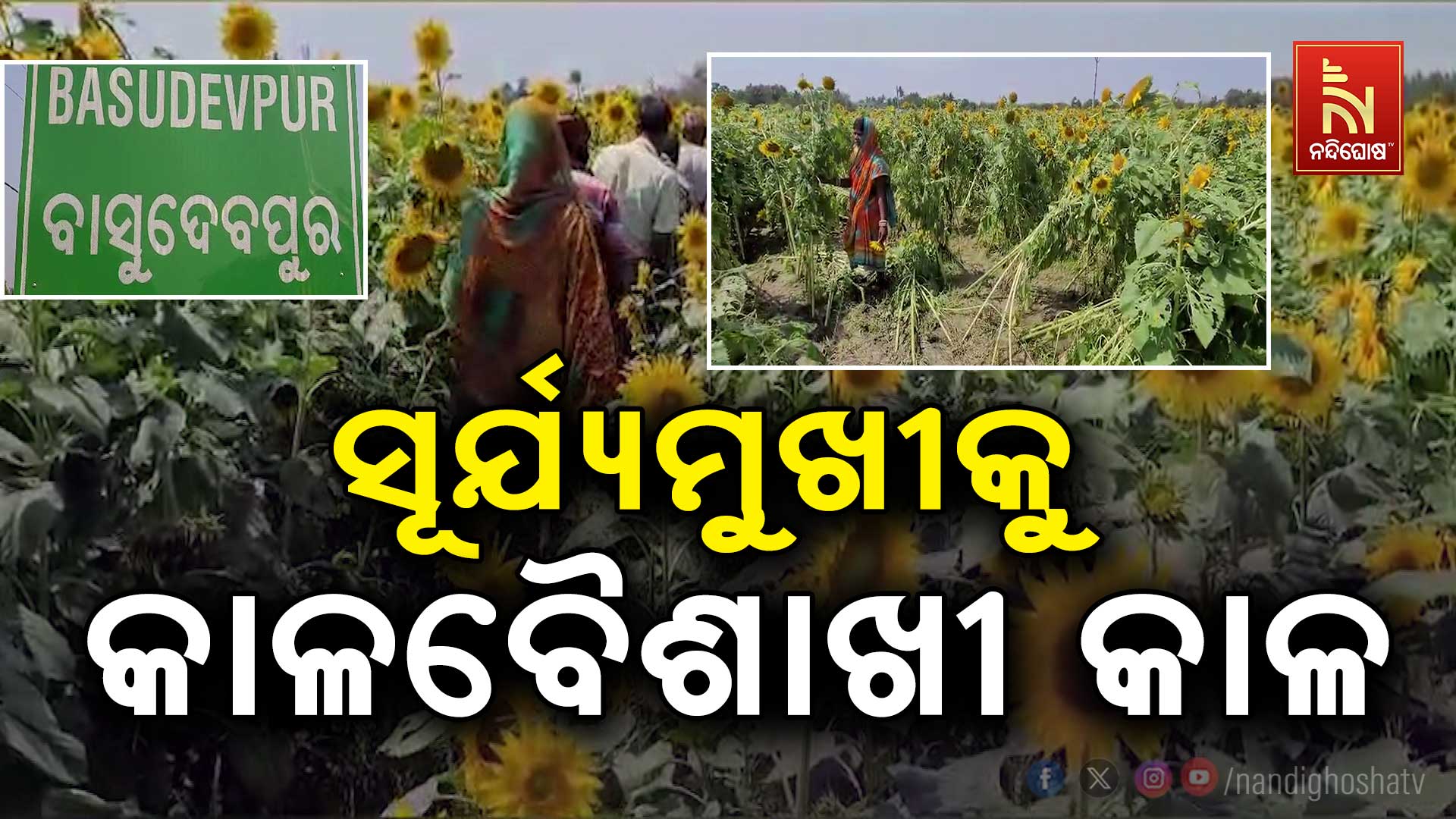 ବାସୁଦେବପୁର: ଚାଷୀ ମୁଣ୍ଡରେ ଚଡକ। କାଳବୈଶାଖୀରେ ସୂର୍ଯ୍ୟମୁଖୀ ଚାଷ ପ୍ରଭାବିତ। ମୁଣ୍ଡ ଝାଳ ତୁଣ୍ଡରେ ମାରି ଜମିରେ ସୁନାର ଫସଲ ଖେଳାଇଥିଲେ ବାସୁଦେବପୁର ବ୍ଲକ ନୂଆଗାଁ ଚାଷୀ। ବର୍ଷା ପାଇଁ ସୂର୍ଯ୍ୟମୁଖୀ ଗଛ ନଇଁ ଯାଇଥିବା ବେଳେ ବିଲରେ ପାଣି ଜମିଛି। ଶହ ଶହ ହେକ୍ଟର ଜମିରେ ହୋଇଛି ସୂର୍ଯ୍ୟମୁଖୀ ଚାଷ । କ୍ଷେତରେ ଲହରୀ ଭାଙ୍ଗୁଛି ସବୁଜିମା। ହଳଦୀ ଗୁରୁ ଗୁରୁ ସୂର୍ଯ୍ୟମୁଖୀ ଚାଷ ଉପରେ କାଳବୈଶାଖୀ ବର୍ଷାର ପ୍ରଭାବ। ବାସୁଦେବପୁର ବ୍ଲକ ନୂଆଗାଁରେ ଅଦିନିଆ ବର୍ଷାରେ ଶୋଇପଡିଛି ସୂର୍ଯ୍ୟମୁଖୀ ଫୁଲ। ମାଳ ମାଳ ପକ୍ଷୀ ସୂର୍ଯ୍ୟମୁଖୀ ଫୁଲକୁ ଖଣ୍ଡିଆ କରିଦେଇଛନ୍ତି। ଜମିରେ ଠିଆ ହୋଇଛି ବର୍ଷା ଜଳ। ଧାର କରଜ କରି ଚାଷ କରିଥିବା ଚାଷୀକୂଳ ଚିନ୍ତାରେ।