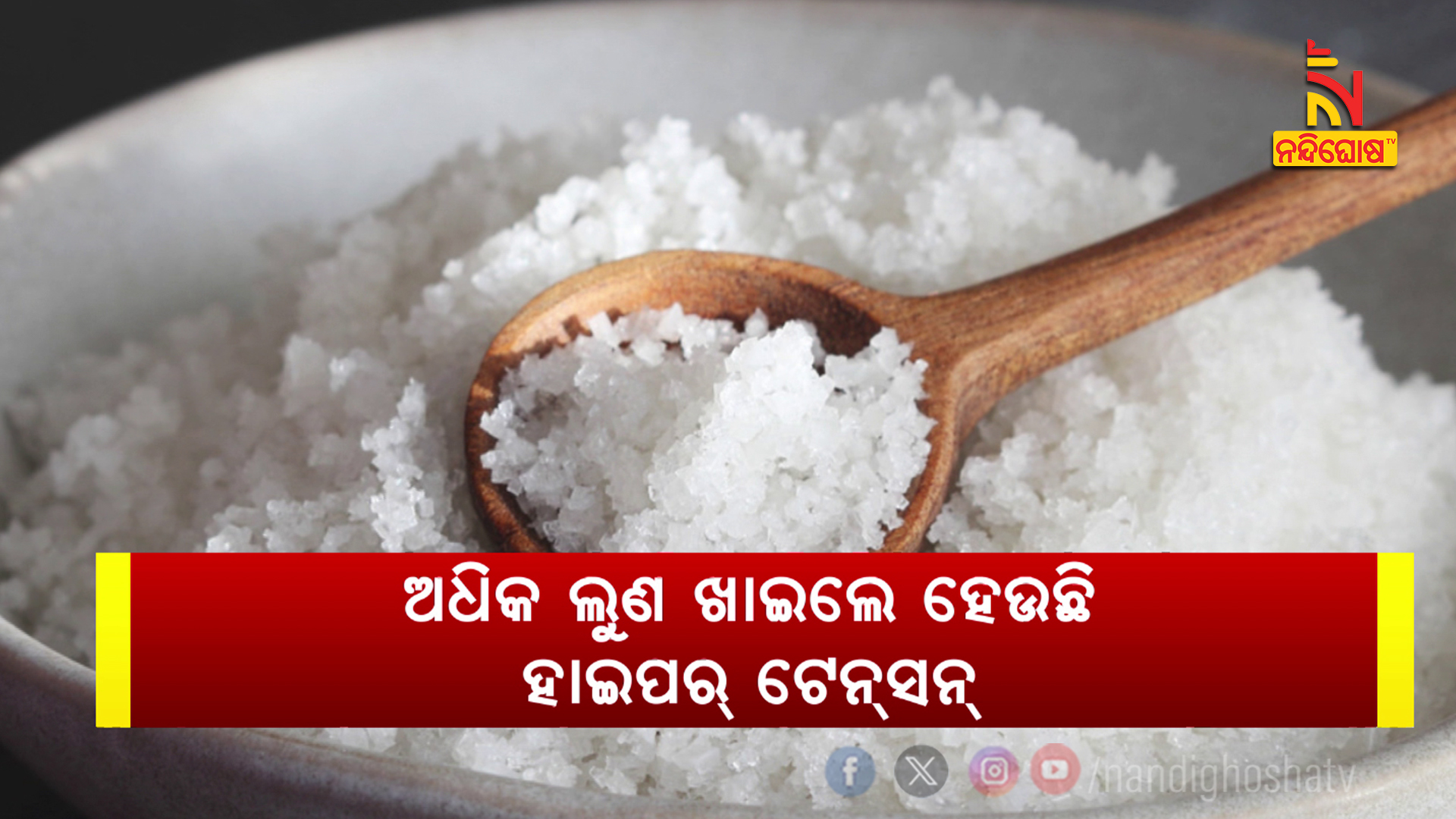 ଅଧିକ ଲୁଣ ଖାଇଲେ ହେଉଛି ହାଇପରଟେନସନ୍ । ଶରୀରରେ ସୋଡିୟମ୍-ପଟାସିୟମ୍ ମାତ୍ରା ବିଗିଡ଼ିଲେ କିଡନୀ ଉପରେ କୁପ୍ରଭାବ ପଡ଼ିବା ସହିତ ଉଚ୍ଚ ରକ୍ତଚାପ ହେବାର ଆଶଙ୍କା ରହିଛି । ଉଚ୍ଚ ରକ୍ତଚାପରୁ ହୋଇପାରେ ହୃଦଘାତ। ଏଥିରେ ଜୀବନ ବି ଯାଉଛି । ସଚେତନତା ଅଭାବରୁ ଅଧିକାଂଶ ଲୋକ ଉଚ୍ଚ ରକ୍ତଚାପ ଓ କିଡନୀ ରୋଗରେ ପୀଡ଼ିତ । ସୁସ୍ଥ ଶରୀର ପାଇଁ ଦିନକୁ ମାତ୍ର ୫ ଗ୍ରାମ୍ ଲୁଣ ଖାଇବା ଉଚିତ । ଏକ ସର୍ଭେରୁ ଜଣାପଡ଼ିଛି, ଭାରତୀୟମାନେ ପ୍ରତିଦିନ ୫ ଗ୍ରାମରୁ ଅଧିକ ଲୁଣ ଖାଉଛନ୍ତି । ଫାଷ୍ଟ୍ଫୁଡ଼୍, ଅଧିକ ତେଲ ମସଲା ଯୁକ୍ତ ଖାଦ୍ୟ ଖାଇବା ଦ୍ବାରା ଶରୀରରେ ସୋଡିୟମ୍ ମାତ୍ରା ବଢୁଛି । ଶରୀରରେ ସୋଡିୟମର ମାତ୍ରା ଅଧିକ ହେଲେ ତା’ର କୁପ୍ରଭାବକୁ ହ୍ରାସ କରିବାକୁ ପଟାସିୟଯୁକ୍ତ ଖାଦ୍ୟ ଅଧିକ ଖାଇବା ଆବଶ୍ୟକ । ସାଲାଡ୍, ଟମାଟୋ, ବିନ୍ସ୍, ଫଳ, ଚୁନା ମାଛରୁ ମିଳିଥାଏ ପଟାସିୟମ୍ । କିଡନୀରେ ଜମା ହେଉଥିବା ସୋଡିୟମକୁ ହ୍ରାସ କରିଥାଏ ପଟାସିୟମ । ଏହା ଉଚ୍ଚ ରକ୍ତଚାପ, ହୃଦଘାତରୁ ବି ରକ୍ଷା କରିଥାଏ ।