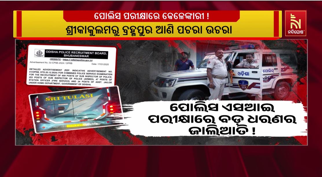 ପୋଲିସ ଏସଆଇ ପରୀକ୍ଷାରେ ବଡ଼ ଧରଣର ଜାଲିଆତି । ବିକ୍ରି ହେଉଛି ଚାକିରି  । ପରୀକ୍ଷା ପୂର୍ବରୁ ମିଳିଛି ଏହି ଦୁର୍ନୀତିର ବଡ଼ ସୁରାଗ। ୧୨୦ ଆଶାୟୀଙ୍କୁ ବ୍ରହ୍ମପୁର ପୋଲିସର ପଚରା ଉଚରା  । ପରୀକ୍ଷା ସ୍ଥଗିତ, କ୍ରାଇମବ୍ରାଞ୍ଚ ତଦନ୍ତ ନିର୍ଦ୍ଦେଶ । ଏସଆଇ ପରୀକ୍ଷାର ୧୨୦ ପ୍ରାର୍ଥୀଙ୍କୁ ବ୍ରହ୍ମପୁର ପୋଲିସ ଧରିବା ପରେ ଏତେ ବଡ଼ ଦୁର୍ନୀତିର ପର୍ଦ୍ଦାଫାସ ହୋଇଛି। ଏହି ଆଶାୟୀଙ୍କୁ ହାଇଦ୍ରାବାଦ ନେଉଥିଲା ପରୀକ୍ଷା ପରିଚାଳନାର ଦାୟିତ୍ଵ ନେଇଥିବା ସଂସ୍ଥା। ହାଇଦ୍ରାବାଦରେ କୋଚିଂ ଦେବା ପାଇଁ ସେମାନଙ୍କୁ ନିଆଯାଇଥିଲା। ସନ୍ଦେହ କରାଯାଉଛି, ସେଠାରେ କୋଚିଂ ବାହାନାରେ ଫିକ୍ସିଂ ହୋଇଥାନ୍ତା। ପରୀକ୍ଷାର୍ଥୀଙ୍କୁ ଅସାଧୁ ଉପାୟର ସୁଯୋଗ ମିଳିଥାନ୍ତା। ଯାହା ଫଳରେ ସେମାନେ ଚାକିରି ପାଇଥାନ୍ତେ। ବ୍ରହ୍ମପୁର ପୋଲିସ କୌଣସି ସୂତ୍ରରୁ ଖବର ପାଇଁ ପିଛା କରିଥିଲା ଏବଂ ସମସ୍ତଙ୍କୁ ଶ୍ରୀକାକୁଲମ୍ ରେ ଧରିଥିଲା। ସମସ୍ତଙ୍କୁ ଧରି ବ୍ରହ୍ମପୁର ଆଣିଛି ପୋଲିସ ଏବଂ ଅଧିକ ତଥ୍ୟ ହାସଲ ପାଇଁ ପଚରା ଉଚରା କରିଛି।