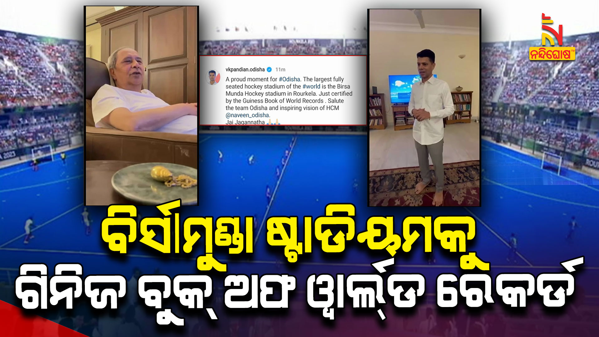 ଭୁବନେଶ୍ବର: ବିଶ୍ବର ସବୁଠାରୁ ଅଧିକ ସିଟ ଥିବା ବଡ଼ ହକି ଷ୍ଟାଡିୟମ୍ ପାଇଁ ଗିନିଜ ବୁକ୍ ଅଫ୍ ୱାର୍ଡଲ ରେକର୍ଡସରେ ସ୍ଥାନ ପାଇଲା ବିର୍ସାମୁଣ୍ଡା ଷ୍ଟାଡିୟମ୍ । ଓଡ଼ିଶା ପାଇଁ ଗର୍ବର ମୁହୂର୍ତ୍ତ । ଭାରତର କ୍ରୀଡା ଇତିହାସରେ ବିର୍ସାମୁଣ୍ଡା ଲେଖିଲା ସ୍ବର୍ଣ୍ଣିମ ଅଧ୍ୟାୟ ।
