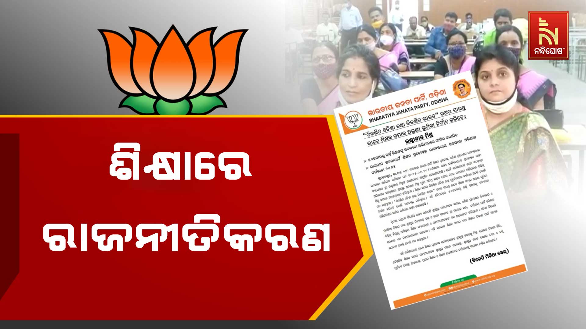 ଗତ ୧୬ ତାରିଖରେ ବିଜେପି ରାଜ୍ଯ ସଭାପତି ମନମୋହନ ସାମଲ, ଗଣଶିକ୍ଷା ମନ୍ତ୍ରୀଙ୍କ ଉପସ୍ଥିତିରେ ଦଳର ରାଜ୍ୟ କାର୍ଯ୍ୟାଳୟରେ ବସିଥିବା ବିଜେପି ଶିକ୍ଷକ ପ୍ରକୋଷ୍ଠ ବୈଠକରେ ଶିକ୍ଷକଙ୍କୁ ପ୍ରାଥମିକ ସଦସ୍ୟ କରିବା ନେଇ ନିଷ୍ପତ୍ତି ହୋଇଥିଲା । ଏନେଇ ଦଳ ପକ୍ଷରୁ ପ୍ରେସ୍ ବିଜ୍ଞପ୍ତିରେ ସୂଚନା ଦିଆଯାଇଛି । ଯାହାକୁ ନେଇ ବିଜେପିକୁ କାଠଗଡ଼ାକୁ ଟାଣିଛନ୍ତି ବିରୋଧୀ ।