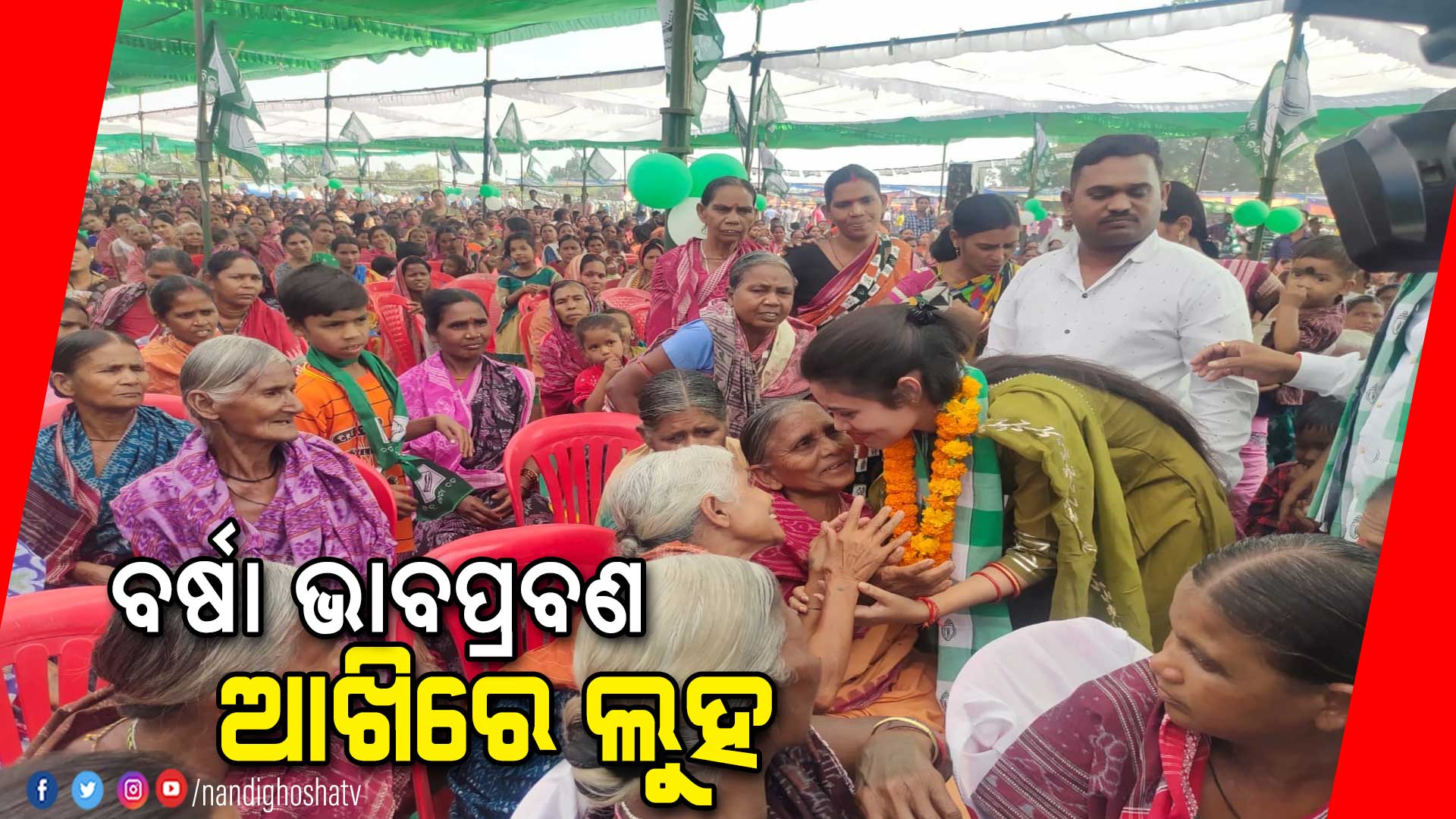 ପଦ୍ମପୁରବାସୀଙ୍କ ସହ ତାଙ୍କ ବାପାଙ୍କ ଥିବା ସମ୍ପର୍କକୁ ଆଗେଇ ନେବାକୁ ସଭା ମଞ୍ଚରୁ ତଳକୁ ଓହ୍ଲାଇ ଆସିଥିଲେ ବର୍ଷା । ମଞ୍ଚ ତଳେ ସାଧାରଣ ଲୋକଙ୍କ ସହ ଭାବର ଆଦାନ ପ୍ରଦାନ କରିଥିଲେ ।