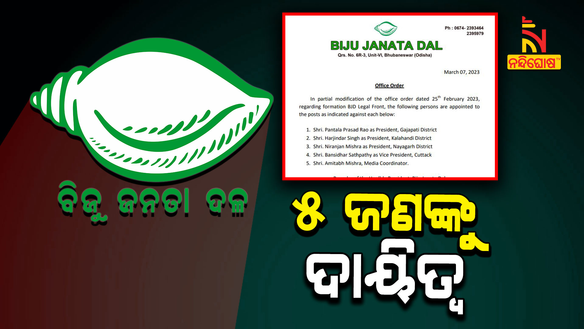 ସେହିପରି ନୟାଗଡ ଜିଲ୍ଲା ଲିଗାଲ ଫ୍ରଣ୍ଟ ସଭାପତି ହୋଇଛନ୍ତି ନିରଞ୍ଜନ ମିଶ୍ର । କଟକ ଜିଲ୍ଲା ଲିଗାଲ ଫ୍ରଣ୍ଟ ଉପସଭାପତି ହୋଇଛନ୍ତି ବଂଶୀଧର ଶତପଥୀ । ଲିଗାଲ ଫ୍ରଣ୍ଟ ଗଣମାଧ୍ୟମ ସଂଯୋଜକ ହୋଇଛନ୍ତି ଅମିତାଭ ମିଶ୍ର ।