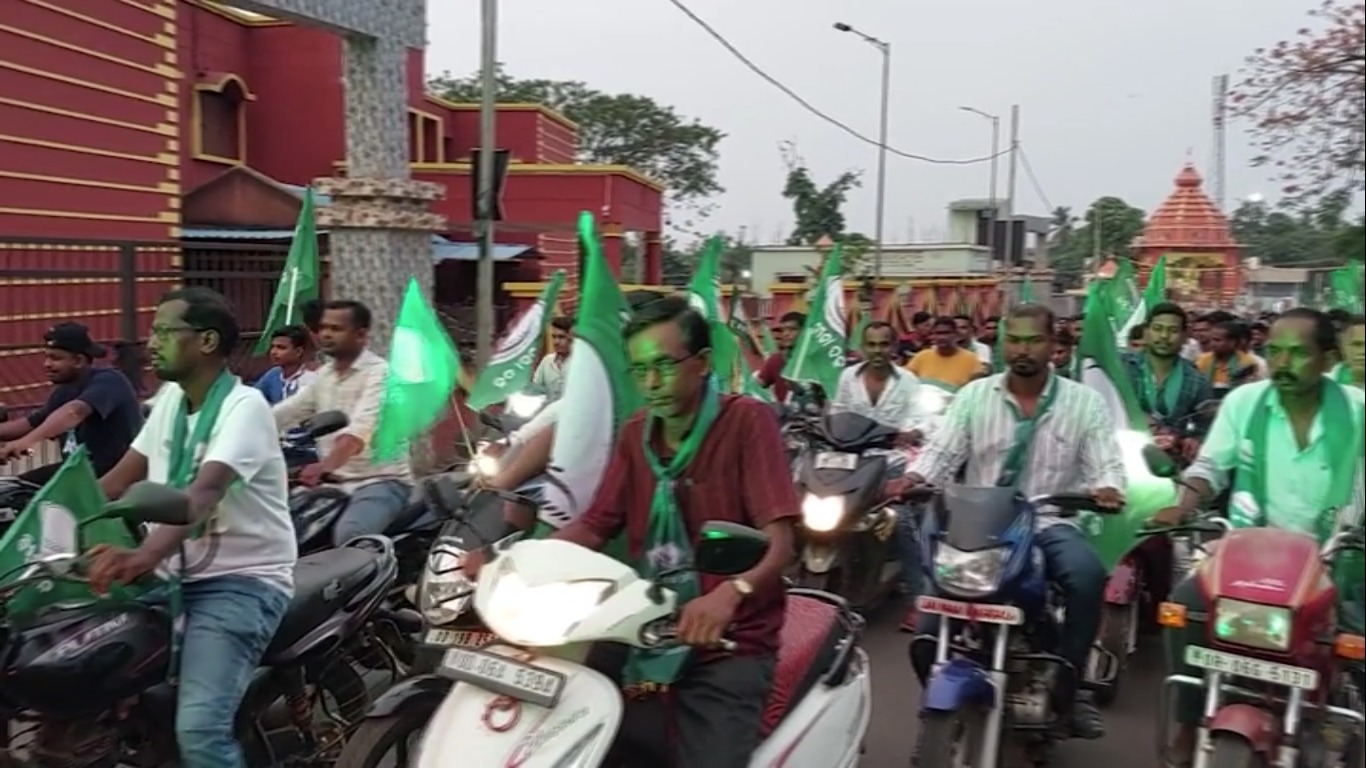 କାମାକ୍ଷାନଗର : କାମାକ୍ଷାନଗର ନିର୍ବାଚନ ମଣ୍ଡଳୀରେ ବାଇକ ଶୋଭାଯାତ୍ରା କରି ଦମ ଦେଖାଇଲା ବିଜେଡି l ବିଭିନ୍ନ ପଞ୍ଚାୟତ ସହ ଏନଏସିରେ ହଜାର ହଜାର ସମର୍ଥକଙ୍କ ସହ ଶକ୍ତି ପ୍ରଦର୍ଶନ କରିଛି ଦଳ l ସହରର ଆଳତୁମା ଠାରୁ ହଜାର ହଜାର ଦଳୀୟ କର୍ମୀଙ୍କ ସହ ବିଶାଳ ବାଇକ ଶୋଭାଯାତ୍ରାରେ ବାହାରି ଇଲେକ୍ଟ୍ରି ଅଫିସ ଛକ, ହନୁମାନ ବଜାର, ଗୋପବନ୍ଧୁ ବଜାର, ଲକ୍ଷ୍ମୀ ବଜାର ଦେଇ ସହର ପରିକ୍ରମା କରି ସ୍ଥାନୀୟ ବାସିନ୍ଦାଙ୍କ ଆଶୀର୍ବାଦ ଭିକ୍ଷା କରିଛନ୍ତି ବିଜେଡି ବିଧାୟକ ପ୍ରାର୍ଥୀ ପ୍ରଫୁଲ୍ଲ ମଲ୍ଲିକ ଓ ସାଂସଦ ପ୍ରାର୍ଥୀ ଅବିନାଶ ସାମଲ l କାମାକ୍ଷାନଗର ଏନଏସି ଅଧ୍ୟକ୍ଷ ଧର୍ମାନନ୍ଦ ପରିଡା, ନଗର ବିଜେଡି ସଭାପତି ଆଦିତ୍ୟ ଆଚାର୍ଯ୍ୟ, ସମସ୍ତ ୧୫ ଟି ୱାର୍ଡର କାଉନସିଲରଙ୍କ ସମେତ କାନପୁରା, ବାଉଁଶପାଳ, କାଦୁଆ ପଞ୍ଚାୟତର ସରପଞ୍ଚ ଓ ବିଭିନ୍ନ ଅନୁଷ୍ଠାନର ସଦସ୍ୟ ଏଥିରେ ସାମିଲ ହୋଇଥିଲେ l