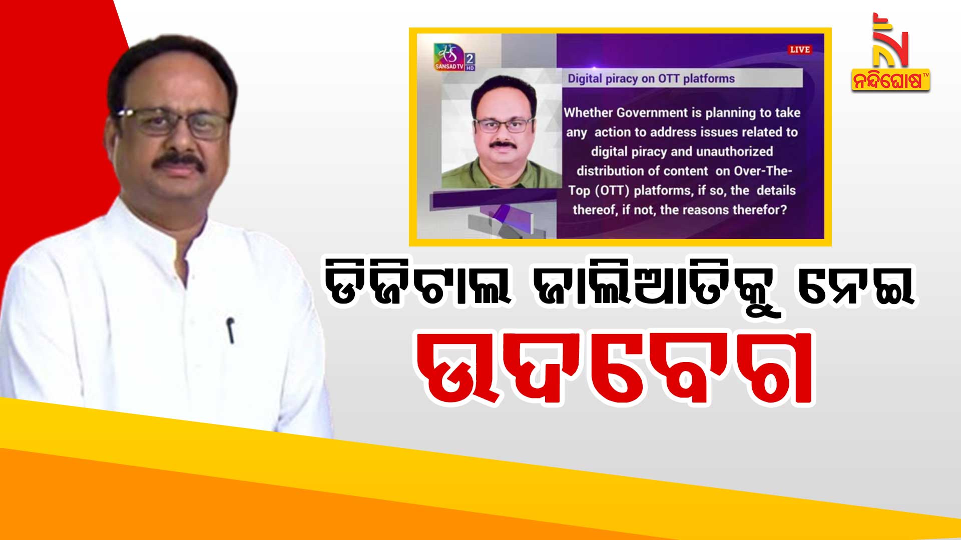 ନୂଆଦିଲ୍ଲୀ: ଓଟିଟି ପ୍ଲାଟଫର୍ମରେ ଡିଜିଟାଲ ଜାଲିଆତି ବା ଅବୈଧ କଣ୍ଟେଣ୍ଟ ପ୍ରଦର୍ଶନକୁ ନେଇ ସଂସଦରେ ବିଜେଡି ସାଂସଦ ମାନସ ମଙ୍ଗରାଜଙ୍କ ଉଦବେଗ । ଏକ ଲିଖିତ ପ୍ରଶ୍ନରେ କେନ୍ଦ୍ର ସୂଚନା ଓ ପ୍ରସାରଣ ମନ୍ତ୍ରୀଙ୍କୁ ପଚାରିଥିଲେ- ଓଟିଟି ପ୍ଲାଟଫର୍ମର ବ୍ୟବହାର ନେଇ ଯୁବଗୋଷ୍ଠୀ ମଧ୍ୟରେ ସଚେତନତା ସୃଷ୍ଟି କରିବାକୁ କେନ୍ଦ୍ର ସରକାର କି ପଦକ୍ଷେପ ନେଉଛନ୍ତି ?
