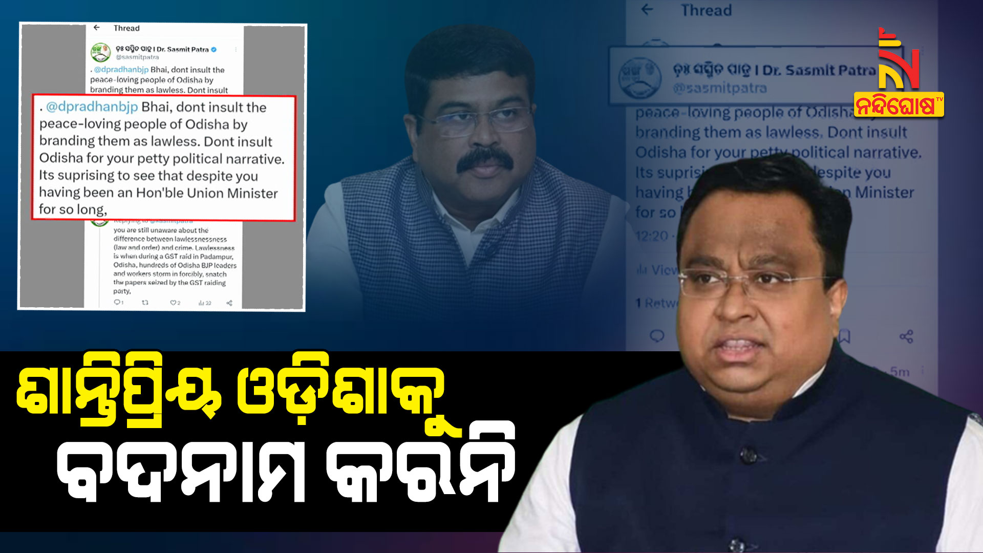 ଭୁବନେଶ୍ୱର: କେନ୍ଦ୍ରମନ୍ତ୍ରୀ ଧର୍ମେନ୍ଦ୍ର ପ୍ରଧାନଙ୍କୁ ଜବାବ ଦେଲେ ସସ୍ମିତ ପାତ୍ର। ପଢାଇଲେ ଆଇନଶୃଙ୍ଖଳା ଓ ଅରାଜକତାର ପାଠ। ଆହୁରି ମଧ୍ୟ ସସ୍ମିତ କହିଛନ୍ତି- ଶାନ୍ତିପ୍ରୀୟ ରାଜ୍ୟକୁ ବଦନାମ କରୁନ୍ତୁ ନାହିଁ କେନ୍ଦ୍ରମନ୍ତ୍ରୀ । ରାଜନୀତି ପାଇଁ ଓଡ଼ିଶାବାସୀଙ୍କୁ ବଦନାମ କରନ୍ତୁ ନାହିଁ । ଦୀର୍ଘବର୍ଷ କେନ୍ଦ୍ରମନ୍ତ୍ରୀ ରହିବା ସତ୍ତ୍ବେ ଅପରାଧ ଓ ଆଇନ ଶୃଙ୍ଖଳା ଭିତରେ ଫରକ ଜାଣିପାରିଲେ ନାହିଁ ।