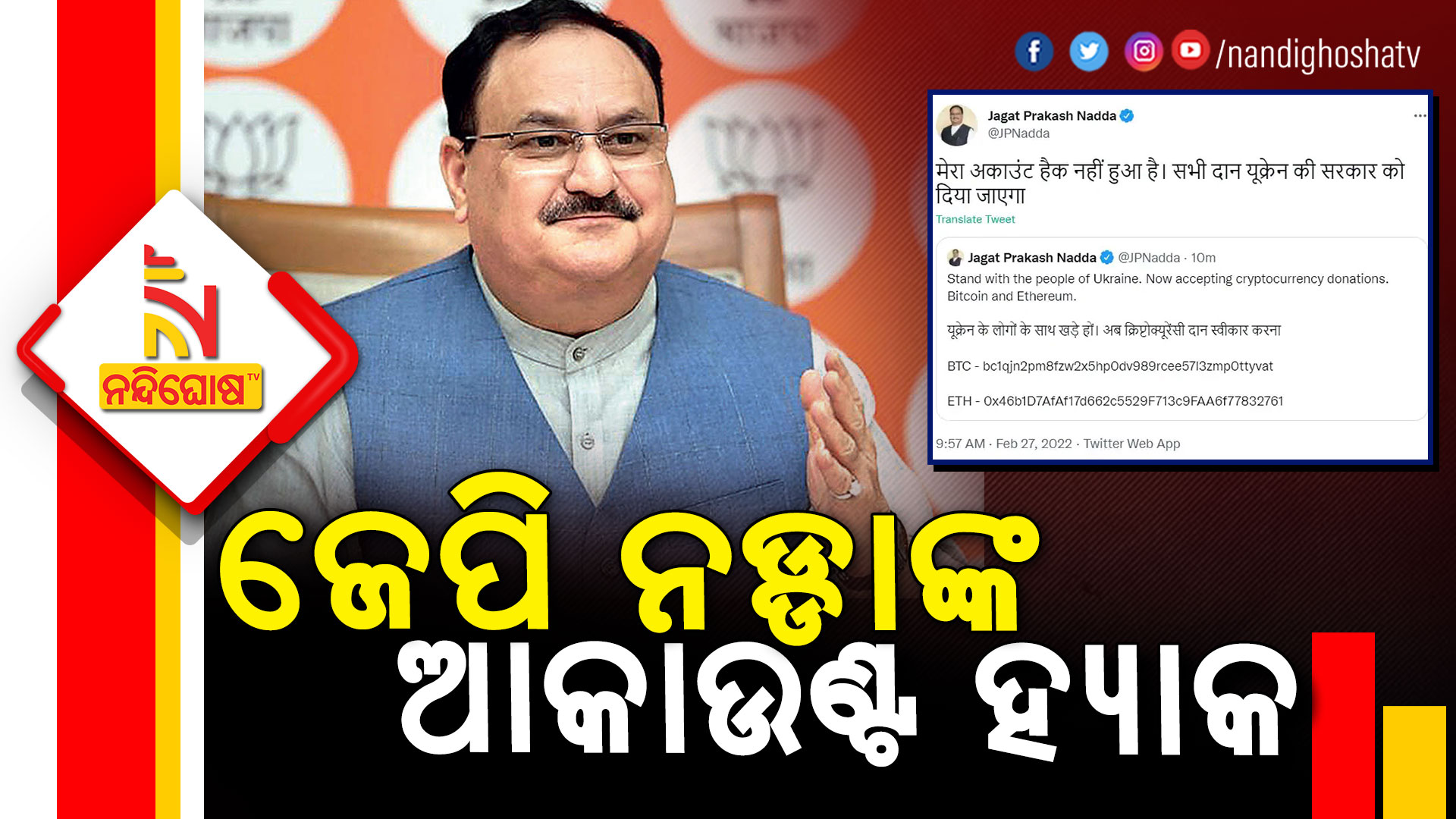 ଜେପି ନଡ୍ଡାଙ୍କ ଟ୍ୱିଟର ଆକାଉଣ୍ଟ ହ୍ୟାକ କରିବା ପରେ ଋଷ ଓ ୟୁକ୍ରେନର ସାହାର୍ଯ୍ୟ ପାଇଁ କ୍ରିପ୍ଟୋକରେନ୍ସିରେ ଦାନ କରିବାକୁ ଅପିଲ କରିଥିଲେ ହ୍ୟାକର । ଏହା ପୂର୍ବରୁ ଏକ ଅନ୍ୟ ଟ୍ୱିଟରେ ଲେଖାଯାଇଥିଲା କି ଋଷର ଲୋକଙ୍କ ସହ ଆମେ ଛିଡା ହୋଇଛୁ । ଏବେ କ୍ରିପ୍ଟୋକରେନ୍ସି, ବିଟକଏନ ଓ ଇଥେରିୟମ ଜରିଆରେ ସାହାର୍ଯ୍ୟ ସ୍ୱୀକାର ହେଉଛି ବୋଲି ଲେଖାଯାଇଥିଲା ।