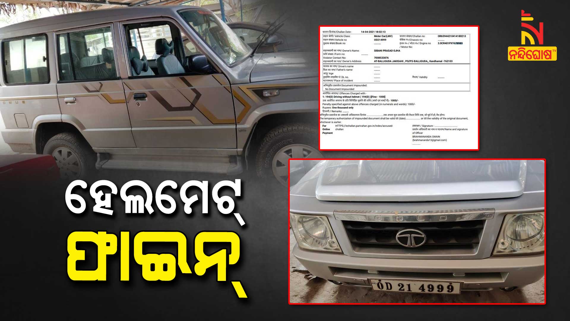 ତେବେ ଖୋର୍ଦ୍ଧା ଟ୍ରାଫିକ୍ ପୋଲିସ କାଟିଥିବା ଏକ ଚାଲାଣକୁ ନେଇ ଚର୍ଚ୍ଚା ଜୋର୍ ଧରିଛି । ଖୋର୍ଦ୍ଧା ଟ୍ରାଫିକ ପୋଲିସ ଏକ ବୋଲେରୋ (OD21 4999)କୁ ହେଲମେଟ୍ ଚାଲାଣ କାଟିଛି । ୧୪ ଏପ୍ରିଲ୍ ୨୦୨୧ରେ ଚାଲାଣ କଟାଯାଇଥିବା ବେଳେ ଚାଲାଣ ନମ୍ବର ହେଉଛି- OR65944210414180213 । ଯେଉଥିରେ ସ୍ପଷ୍ଟ ଭାବରେ ଲେଖାଯାଇଛି ବିନା ହେଲମେଟରେ ଗାଡ଼ି ଚାଳନା ପାଇଁ ୧୯୪(ଡି) ଅନୁସାରେ ୧ ହଜାର ଟଙ୍କା ଚାଲାଣ କଟାଯାଇଛି ।