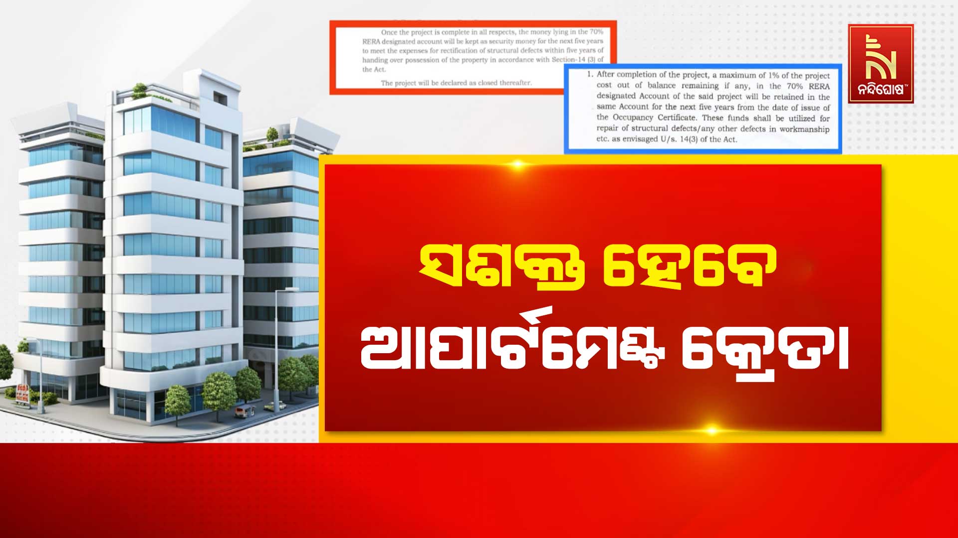 ଆପାର୍ଟମେଣ୍ଟ ପ୍ରକଳ୍ପର ଭାଗ୍ୟ କ୍ରେତାଙ୍କ ହାତରେ । କ୍ରେତା ସଂଘ ଦେବ ପ୍ରୋଜେକ୍ଟ କମ୍ପ୍ଲିସନ୍ ସାର୍ଟିଫିକେଟ । କ୍ରେତା ହେଲେ ଅଧିକ ସଶକ୍ତ, ବିକ୍ରେତାଙ୍କୁ ବି ମିଳିଲା ରିହାତି । ଓରେରା ପକ୍ଷରୁ ସଂଶୋଧିତ ବିଜ୍ଞପ୍ତି ଜାରି । କୌଣସି ଆପାର୍ଟମେଣ୍ଟର କାମ ସରିଗଲେ ପ୍ରମୋଟରମାନଙ୍କୁ ୬ଟି ସର୍ତ୍ତ ପୂରଣ କରିବାକୁ ପଡୁଥିଲା । କମ୍ପ୍ଲିସନ୍ ସାର୍ଟିଫିକେଟ, ଅକ୍ୟୁପାନ୍ସି ସାର୍ଟିଫିକେଟ, କ୍ରେତା ସଂଘ ଗଠନ, ଲେ-ଆଉଟ ପ୍ଲାନ ସହ କମନ ଏରିଆ ସଂଘକୁ ହସ୍ତାନ୍ତର ପାଇଁ ଡିଡ ଦାଖଲ । ସମସ୍ତ ସର୍ତ୍ତ ପୂର୍ବ ଭଳି ଥିବା ବେଳେ ଏଣିକି କ୍ରେତା ସଂଘକୁ ପ୍ରମୋଟର ତରଫରୁ ସବୁ ମିଳିସାରିଛି ବୋଲି ସଂଘ ସାର୍ଟିଫିକେଟ ଦେବା ପରେ ହିଁ ପ୍ରମୋଟରଙ୍କୁ ମିଳିବ କମ୍ପ୍ଲିସନ ସାର୍ଟିଫିକେଟ । ଏହାଦ୍ବାରା ସବୁବେଳେ ଅପାର୍ଟମେଣ୍ଟ ମାଲିକମାନେ କରୁଥିବା ଅଭିଯୋଗ ଆଉ ରହିବ ନାହିଁ । ମାଲିକ ସଂଘ ହିଁ ସବୁ କିଛି ନିୟନ୍ତ୍ରଣ କରିବ । ଏହାକୁ କ୍ରେତାମାନେ ସ୍ବାଗତ କରିଛନ୍ତି ।