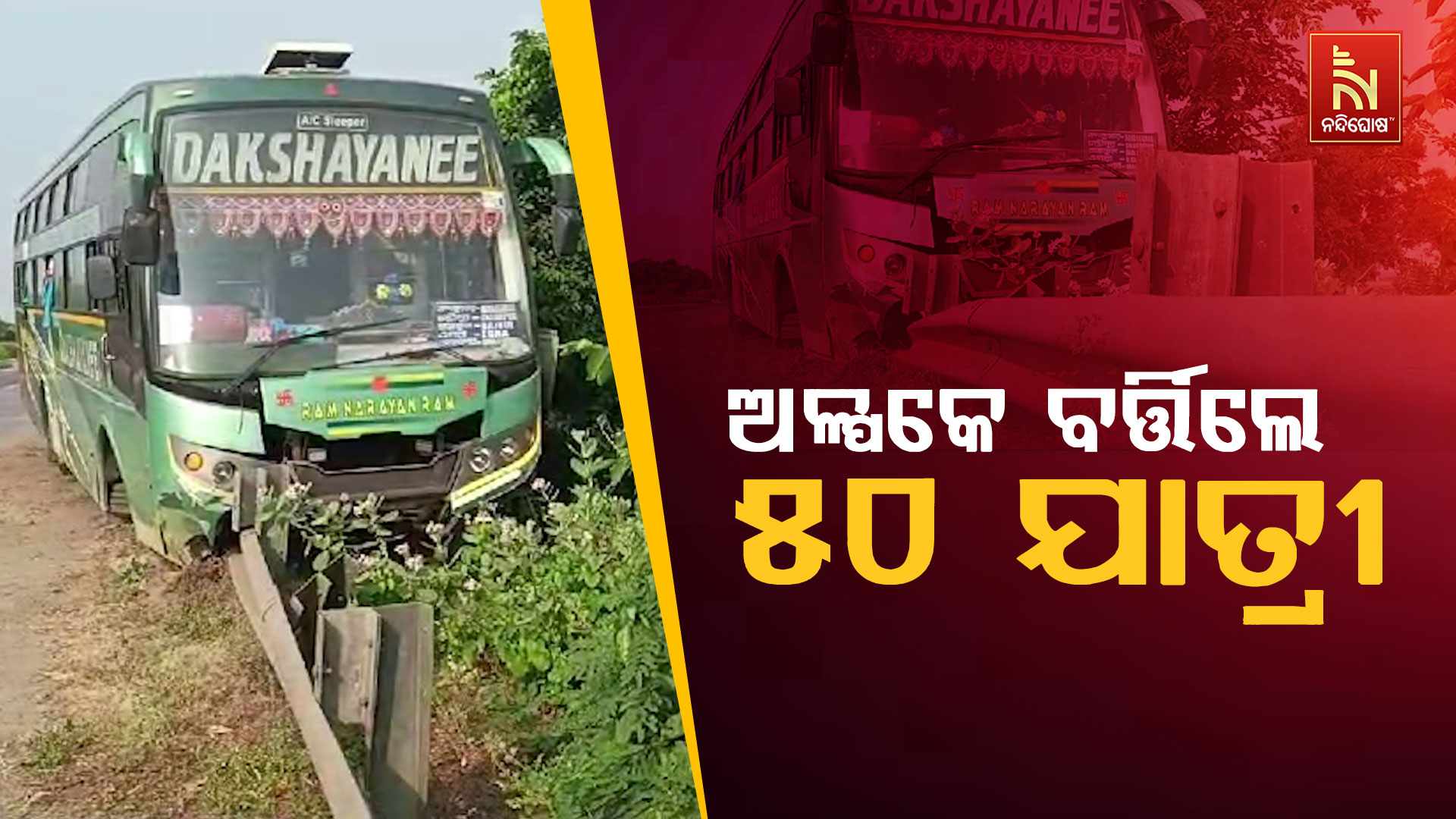 ବାଲେଶ୍ୱର : ବସ୍ ଦୁର୍ଘଟଣା, ଅଳ୍ପକେ ବର୍ତ୍ତିଲେ ୫୦ ରୁ ଅଧିକ ଯାତ୍ରୀ। ଭାରସାମ୍ୟ ହରାଇ ଡିଭାଇଡରରେ ପିଟିହେଲା ଯାତ୍ରୀବାହୀ ବସ୍। ୬୦ ନଂ ଜାତୀୟ ରାଜପଥ ଇନ୍ଦିରା ଛକ ନିକଟରେ ଦୁର୍ଘଟଣା। ବାଲେଶ୍ବରରୁ କୋଲକାତା ଅଭିମୁଖେ ଯାଉଥିବା ଦାକ୍ଷାୟାନୀ ନାମକ ଘରୋଇ ଯାତ୍ରୀବାହୀ ବସ୍। ମଧ୍ଯ ରାତ୍ରିରେ ଦୁର୍ଘଟଣା ଘଟିଥିଲା। ସୌଭାଗ୍ୟକୁ ସମସ୍ତ ଯାତ୍ରୀ ସୁରକ୍ଷିତ ଅଛନ୍ତି। ଅନ୍ୟ ଏକ ବସ୍ ଯୋଗେ ଗନ୍ତବ୍ୟସ୍ଥଳରେ ପହଞ୍ଚିଛନ୍ତି ସମସ୍ତ ଯାତ୍ରୀ। ଡ୍ରାଇଭରଙ୍କ ଆଖି ଲାଗି ଯିବାରୁ ଦୁର୍ଘଟଣା ଘଟିଥିବା ଅନୁମାନ କରାଯାଉଛି। ବସର ସମସ୍ତ କର୍ମଚାରୀ ଫେରାର ଅଛନ୍ତି। ଘଟଣାସ୍ଥଳରେ ବସ୍ତା ପୋଲିସ ପହଞ୍ଚି ଘଟଣାର ତଦନ୍ତ କରୁଛି।