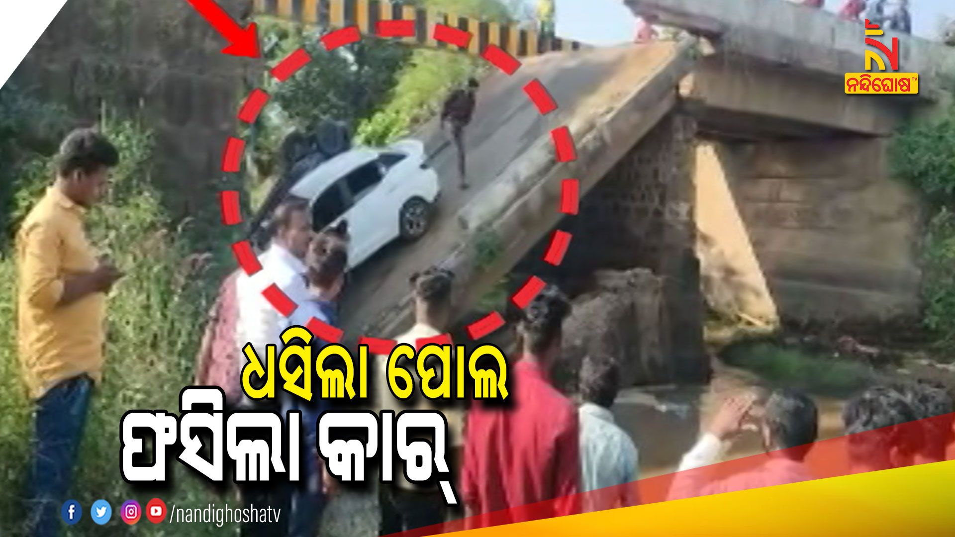 ହଠାତ ଦବିଗଲା ପୋଲ, ଫସିଗଲା ୨ଟି କାର୍