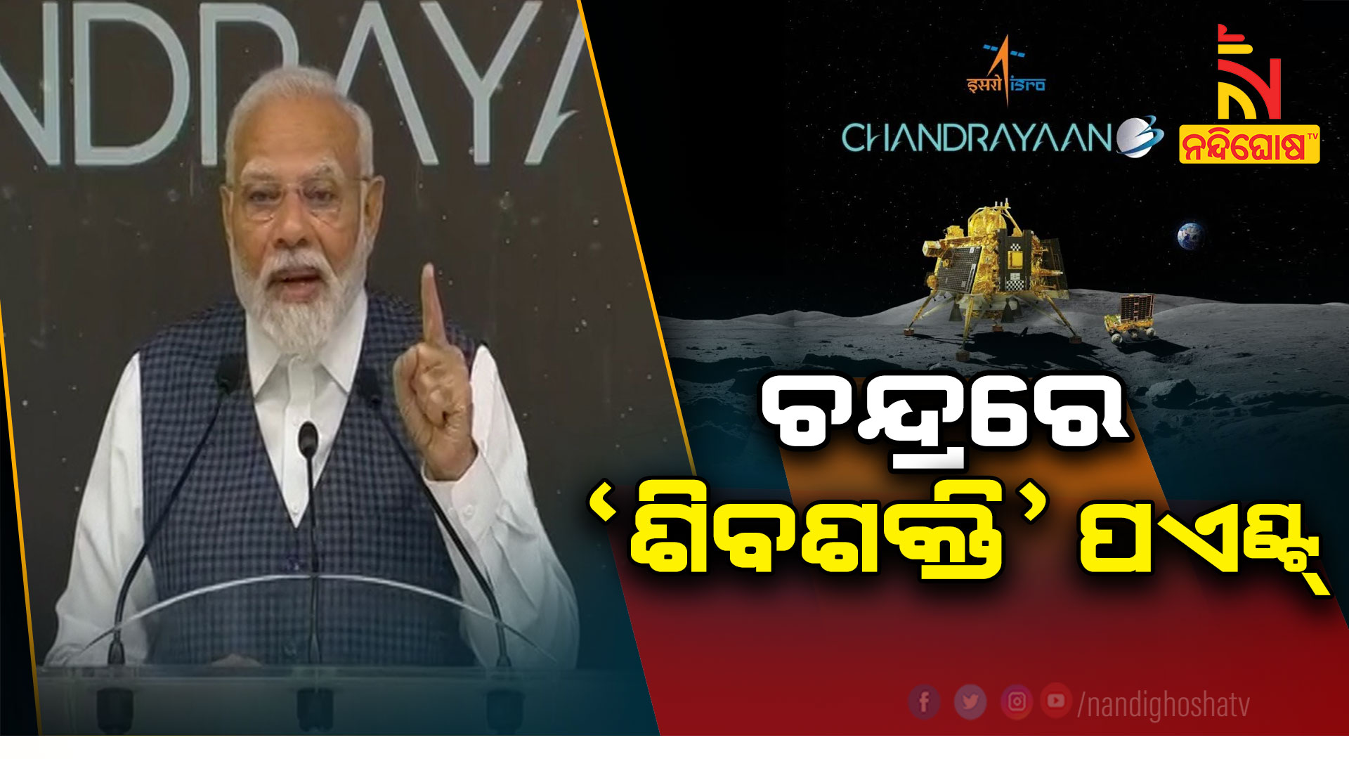 ବାଙ୍ଗାଲୋର: ସପଲ ହୋଇଛି ଭାରତର ଚନ୍ଦ୍ରଯାନ-୩ ମିଶନ । ଇସ୍ରୋ ବୈଜ୍ଞାନିକଙ୍କୁ ଶନିବାର ସମ୍ବୋଧିତ କରିଛନ୍ତି ପ୍ରଧାନମନ୍ତ୍ରୀ ନରେନ୍ଦ୍ର ମୋଦି । ବୈଜ୍ଞାନିକଙ୍କୁ ଉଦବୋଧନ ସମୟରେ ପ୍ରଧାନମନ୍ତ୍ରୀ ଏକ ବଡ଼ ଘୋଷଣା କରିଛନ୍ତି । ଚନ୍ଦ୍ରର ଯେଉଁ ସ୍ଥାନରେ ଚନ୍ଦ୍ରଯାନ -୩ର ଲ୍ୟାଣ୍ଡର ବିକ୍ରମ ଅବତରଣ କଲା ସେ ସ୍ଥାନକୁ ‘ ଶିବଶକ୍ତି’ କୁହାଯିବ ବୋଲି ପ୍ରଧାନମନ୍ତ୍ରୀ ଉଦବୋଧନରେ ପ୍ରକାଶ କରିଛନ୍ତି । ଏହାସହ ଅଗଷ୍ଟ ୨୩ ତାରିଖ ଦିନ ଭାରତ ଚନ୍ଦ୍ରରେ ଜାତୀୟ ପତାକା ଉତ୍ତୋଳନ କରିଛି। ଏଣୁ ଏହି ଦିନକୁ ‘ଜାତୀୟ ମହାକାଶ ଦିବସ’ ରୂପେ ପାଳନ କରାଯିବ ।