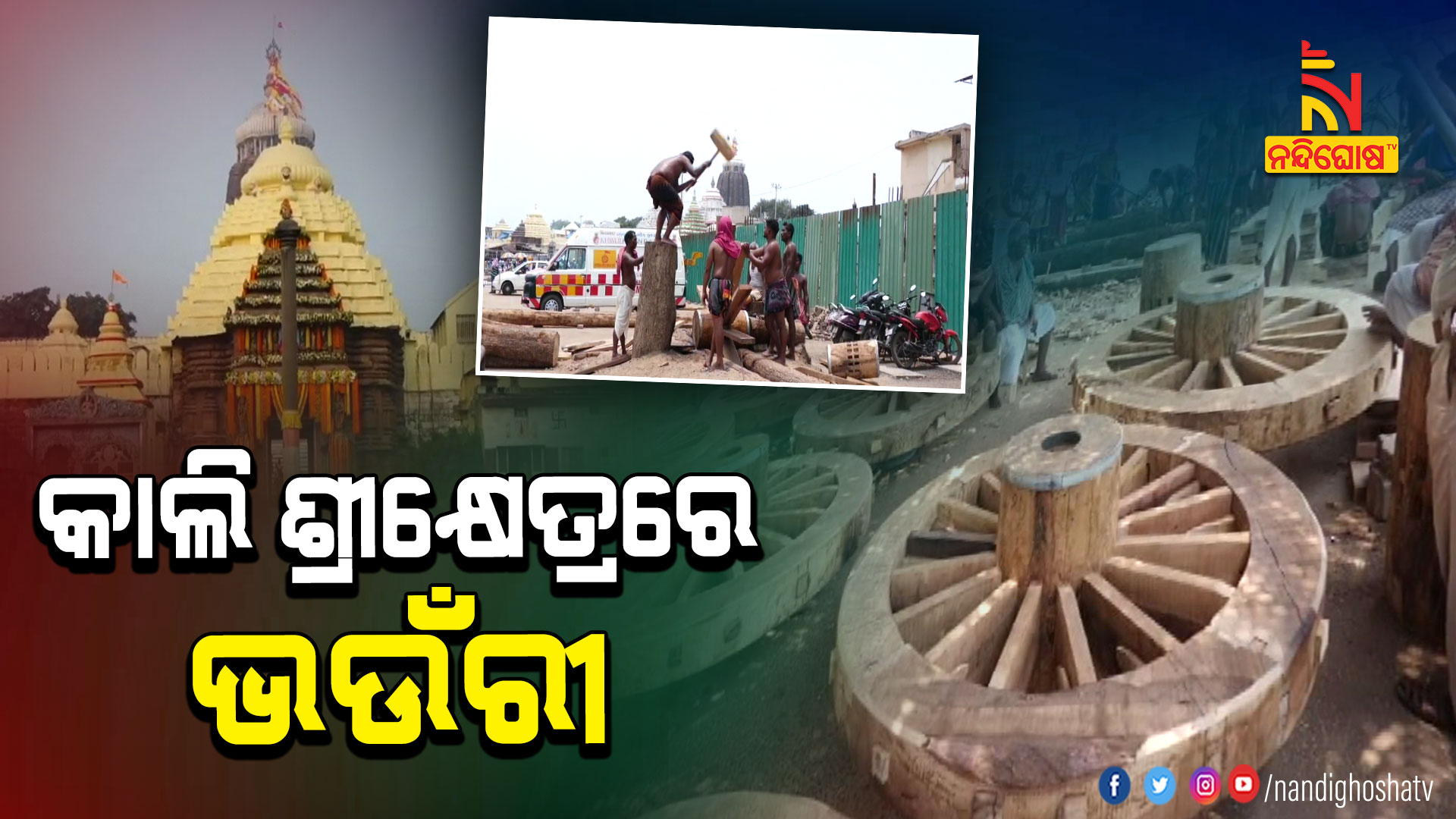 ପୁରୀ: ଘୋଷଯାତ୍ରା ପାଇଁ ରଥଖଳାରେ ଜୋରସୋରରେ ଚାଲିଛି ରଥ ନିର୍ମାଣ କାମ । ଶ୍ରୀକ୍ଷେତ୍ର ଭଉଁରୀ ଯାତ୍ରା ଅବସରରେ ବିଧି ଓ ପରମ୍ପରା ଅନୁଯାୟୀ ରଥ ଯାତ୍ରାର ଆଉ ଏକ ପର୍ଯ୍ୟାୟ ଆରମ୍ଭ ହେବ । ଶ୍ରୀମନ୍ଦିରରେ ଶ୍ରୀଜୀଉଙ୍କ ସକାଳ ଧୂପ ସରିବା ପରେ ରଥଖଳାକୁ ବିଜେ କରିବ ଆଜ୍ଞାମାଳ । ମହାରଣା ସେବାୟତଙ୍କ ଉପସ୍ଥିତିରେ ଭୋଇ ସେବକମାନେ ତିନି ରଥର ଦୁଇଟି ଲେଖାଏଁ ଚକରେ ଗୋଟିଏ ଲେଖାଏଁ ଅଖ ଡେରା ନିତୀ ସମ୍ପର୍ଣ୍ଣ କରିବେ ।