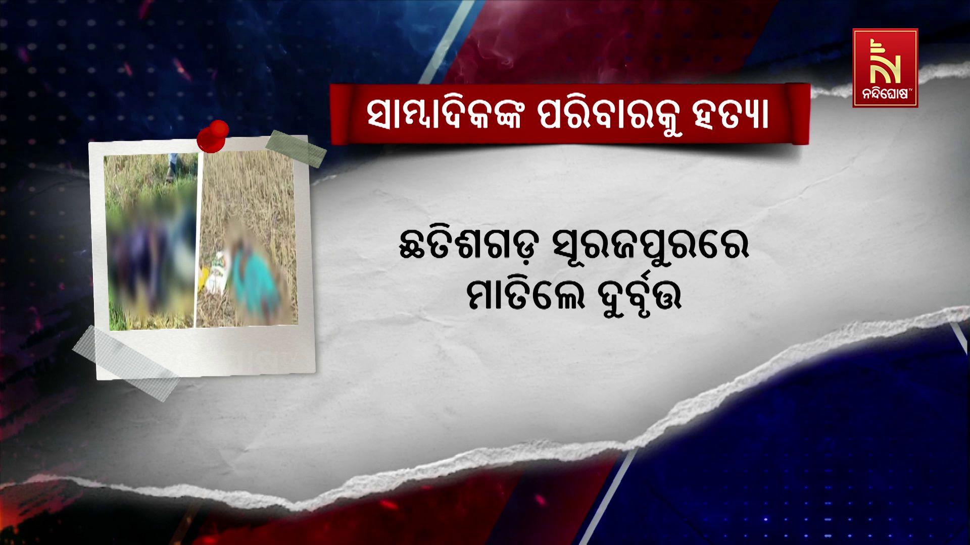ନନ୍ଦିଘୋଷ ବ୍ୟୁରୋ: ଛତିଶଗଡ଼ ସୂରଜପୁରରେ ଆଜତକର ଜିଲ୍ଲା ରିପୋର୍ଟରଙ୍କ ପରିବାର ସଦସ୍ଯଙ୍କୁ ହତ୍ୟା । ରିପୋର୍ଟର ସନ୍ତୋଷ କୁମାର ଟପ୍ପୋଙ୍କ ବାପା, ମା ଓ ଭାଇଙ୍କୁ ହତ୍ଯା କରିଛନ୍ତି ଦୁର୍ବୃତ୍ତ । ସମ୍ପତ୍ତିଗତ ବିବାଦ କାରଣରୁ ସେମାନଙ୍କୁ ହତ୍ଯା କରାଯାଇଛି । ଗତ ୧୦ ତାରିଖରେ ହୋଇଥିବା ହତ୍ଯାକୁ ନେଇ ରାଜ୍ଯରେ ଆଇନଶୃଙ୍ଖଳା ସ୍ଥିତି ଉପରେ ପ୍ରଶ୍ନ ସୃଷ୍ଟି କରିଛି । ଗତ ଶୁକ୍ରବାର ସନ୍ତୋଷଙ୍କ ବାପା ମାଘେ ଟପ୍ପୋ, ମା ବାସନ୍ତୀ ଟପ୍ପୋ, ଭାଇ ନରେଶ ଟପ୍ପୋ ଜଗନ୍ନାଥପୁରସ୍ଥିତ ନିଜ ଫାର୍ମକୁ ଯାଇଥିଲେ । ତେବେ ଏହି ଜମିକୁ ନେଇ ପୂର୍ବରୁ ପାରିବାରିକ ବିବାଦ ରହିଥିଲା । ସେମାନେ ସେହି ଜମିରେ ଥିବାବେଳେ ୬ରୁ ୭ ଜଣ ବ୍ଯକ୍ତି ସେଠାରେ ପହଞ୍ଚି ଗଣ୍ଡଗୋଳ ସୃଷ୍ଟି କରିଥିଲେ । ପରେ ଫାର୍ସା ଓ ଲାଠିରେ ସେମାନଙ୍କୁ ଆକ୍ରମଣ କରିଥିଲେ । ଘଟଣାସ୍ଥଳରେ ବାସନ୍ତୀ ଓ ନରେଶଙ୍କ ମୃତ୍ଯୁ ଘଟିଥିବାବେଳେ ଗୁରୁତର ଆହତ ମାଘେଙ୍କୁ ଅମ୍ବିକାପୁର ମେଡିକାଲ କଲେଜକୁ ନିଆଯାଇଥିଲା । ସେଠାରେ ଡାକ୍ତର ତାଙ୍କୁ ମୃତ ଘୋଷଣା କରିଥିଲେ । ତେବେ ଅନ୍ଯତମ ଭାଇ ଉମେଶ ଖସିଯାଇଥିଲେ । ଏହି ବିବାଦୀୟ ଜମି ପ୍ରସଙ୍ଗରେ ମାମଲା କୋର୍ଟକୁ ଯାଇଥିଲା ଏବଂ କୋର୍ଟ ସନ୍ତୋଷଙ୍କ ପରିବାର ସପକ୍ଷରେ ରାୟ ଦେଇଥିଲେ । ଖର୍ଗାଓ୍ବା ଓ ପ୍ରତାପପୁର ପୋଲିସ ଘଟଣାର ଅନୁସନ୍ଧାନ କରୁଛି । ଛତିଶଗଡ଼ରେ ଅନ୍ୟ ଜଣେ ସାମ୍ବାଦିକ ମୁକେଶ ଚନ୍ଦ୍ରାକରଙ୍କୁ ହତ୍ଯା କରିବାର କିଛି ଦିନ ପରେ ଏହି ହତ୍ଯାକାଣ୍ଡ ଘଟିଛି । ବିଜାପୁର ଜିଲ୍ଲାରେ ରାସ୍ତା କାମରେ ହୋଇଥିବା ଦୁର୍ନୀତିର ପର୍ଦ୍ଦାଫାସ୍ କରିଥିବାରୁ ମୁକେଶଙ୍କୁ ଗତ ଜାନୁଆରୀ ୧ରେ ଅମାନୁଷିକ ହତ୍ଯା କରାଯାଇଥିଲା । ଏହି ହତ୍ଯାକାଣ୍ଡର ମୁଖ୍ଯ ଅଭିଯୁକ୍ତ ସୁରେଶ ଚନ୍ଦ୍ରାକରକୁ ଗତ ଜାନୁଆରୀ ୫ରେ ଗିରଫ କରାଯାଇଥିଲା ।
