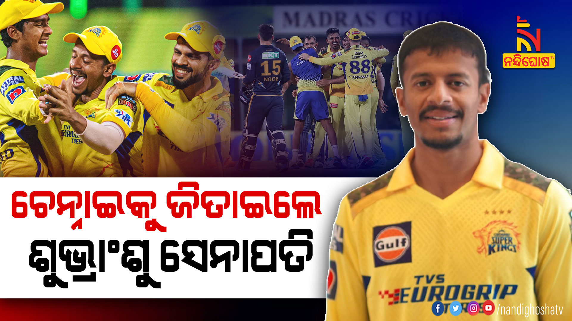 ଚେନ୍ନାଇ: IPL ଫାଇନାଲରେ ଚେନ୍ନାଇ ସୁପର କିଙ୍ଗ୍ସ । ଗୁଜରାଟ ଟାଇଟନ୍ସ ଉପରେ ଭାରି ପଡ଼ିଲେ ମାହି ବାହିନୀ । ଡିଫେଣ୍ଡିଂ ଚମ୍ପିଆନ୍ ଗୁଜରାଟ ଟାଇଟନ୍ସକୁ ୧୫ ରନରେ ପରାସ୍ତ କରି ଫାଇନାଲରେ CSK । ଏହି ବିଜୟ ସହ ଆଇପିଏଲରେ ଦଶମ ଥର ପାଇଁ ଫାଇନାଲରେ ପ୍ରବେଶ କରିଛି ଚେନ୍ନାଇ । ତେବେ ଏହି ମ୍ୟାଚରେ ଚେନ୍ନାଇକୁ ଜିତାଇଛନ୍ତି ଓଡ଼ିଆ ପୁଅ ଶୁଭ୍ରାଂଶୁ ସେନାପତି । ଶୁଭ୍ରାଂଶୁଙ୍କ ରନ୍ ଆଉଟ ଫଳରେ IPL ଫାଇନାଲରେ ପହଞ୍ଚି ପାରିଛି ଚେନ୍ନାଇ ସୁପର କିଙ୍ଗ୍ସ ।