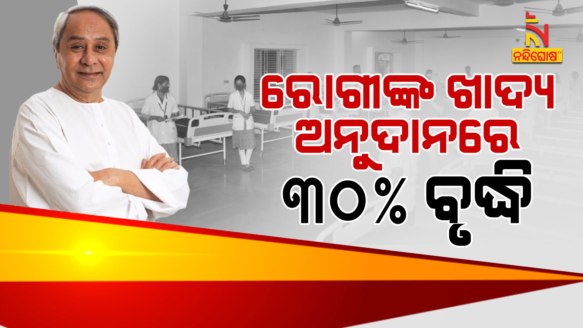 ରୋଗୀ ସେବା ପ୍ରଦାନ ବ୍ୟବସ୍ଥାକୁ ଅଧିକ ସୁଦୃଢ କରିବା ଉଦ୍ଦେଶ୍ୟରେ ସରକାରୀ ଡାକ୍ତରଖାନାରେ ଚିକିତ୍ସା ନିମନ୍ତେ ଭର୍ତ୍ତି ହେଉଥିବା ଇନଡୋର ରୋଗୀଙ୍କ ପାଇଁ ଦିଆଯାଉଥିବା ଖାଦ୍ୟ ଅନୁଦାନରେ ୩୦ ପ୍ରତିଶତ ବୃଦ୍ଧିକୁ ମୁଖ୍ୟମନ୍ତ୍ରୀ ନବୀନ ପଟ୍ଟନାୟକ ଅନୁମୋଦନ କରିଛନ୍ତି । ଏହାଦ୍ୱାର ବାର୍ଷିକ ୬୪ କୋଟି ଟଙ୍କା ଖର୍ଚ୍ଚ ହେବ ଓ ଉପକୃତ ହେବେ ୪୨ ଲକ୍ଷରୁ ଅଧିକ ରୋଗୀ । ନିଆଯାଇଥିବା ନୂଆ ନିଷ୍ପତ୍ତି ଅନୁଯାୟୀ ଡାକ୍ତରଖାନାମାନଙ୍କରେ ଶଯ୍ୟା ପିଛା ଦିଆଯାଉଥିବା ସାଧାରଣ ଦୈନିକ ଖାଦ୍ୟ ବାବଦକୁ ୮୫ ଟଙ୍କା ବଦଳରେ ୧୧୦ ଟଙ୍କା, ଶିଶୁମାନଙ୍କ ପାଇଁ ଦିଆଯାଉଥିବା ଦୈନିକ ୭୫ ଟଙ୍କାରୁ ୯୫ ଟଙ୍କା, ଉଚ୍ଚ ପୁଷ୍ଟିସାରଯୁକ୍ତ ଖାଦ୍ୟ ପାଇଁ ଦିଆଯାଉଥିବା ଦୈନିକ ୯୫ ଟଙ୍କାରୁ ୧୨୦ ଟଙ୍କା, ଶୁଖିଲା ଖାଦ୍ୟ ପାଇଁ ଦିଆଯାଉଥିବା ଦୈନିକ ୭୫ ଟଙ୍କାରୁ ୯୫ ଟଙ୍କା ଏବଂ ତରଳ ଖାଦ୍ୟ ବାବଦକୁ ଦିଆଯାଉଥିବା ଦୈନିକ ୮୫ ଟଙ୍କାରୁ ୧୧୦ ଟଙ୍କାକୁ ବୃଦ୍ଧି କରାଯାଇଛି । ସୂଚନାଯୋଗ୍ୟ ଯେ, ରାଜ୍ୟର ୬୧୮ଟି ସରକାରୀ ଡାକ୍ତରଖାନାରେ ଏହି ବର୍ଦ୍ଧିତ ମୂଲ୍ୟରେ ଖାଦ୍ୟ ଯୋଗାଇ ଦିଆଯିବ ।