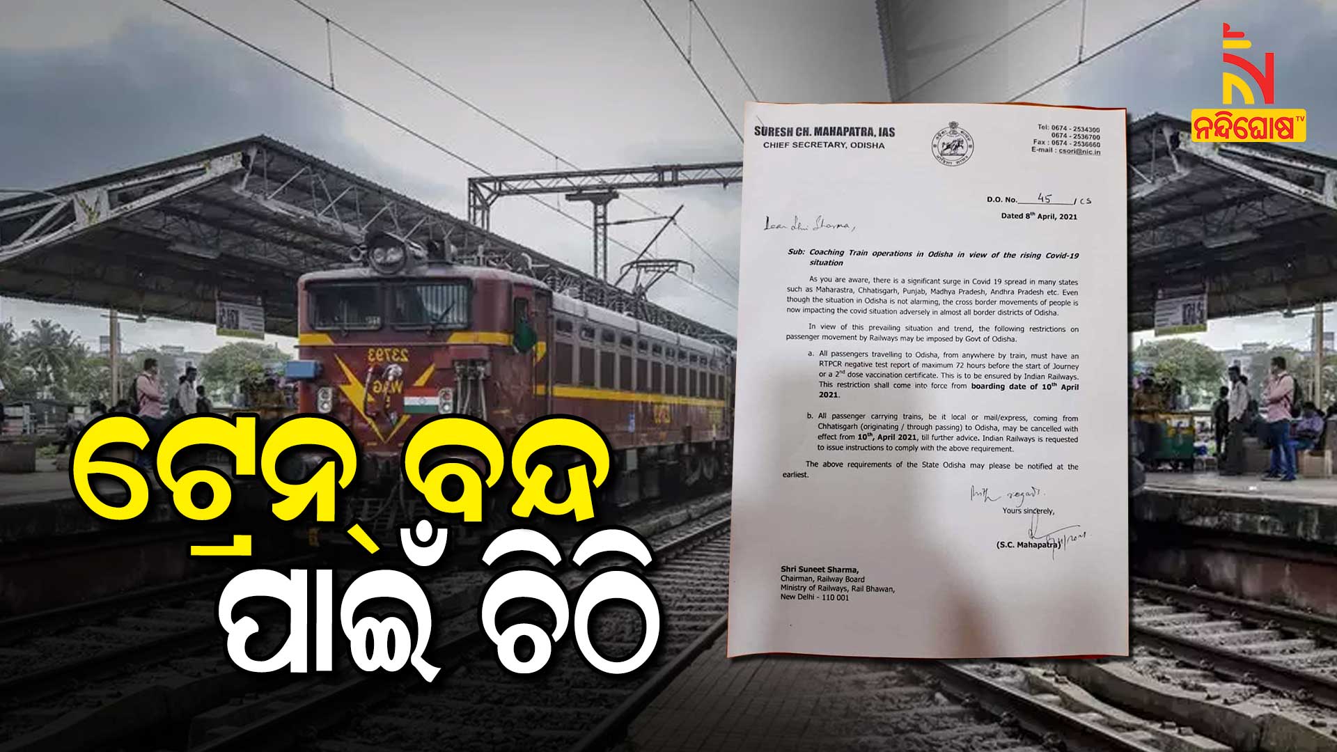 ଏନେଇ ମୁଖ୍ୟ ଶାସନ ସଚିବ ସୁରେଶ ଚନ୍ଦ୍ର ମହାପାତ୍ର ରେଲୱେ ବୋର୍ଡ ଅଧ୍ୟକ୍ଷ ସୁନୀତ ଶର୍ମାଙ୍କୁ ଚିଠି ଲେଖିଛନ୍ତି । ଟ୍ରେନରେ ଦେଶର ଯେକୌଣସି ସ୍ଥାନରୁ ଓଡ଼ିଶା ଆସୁଥିବା ଲୋକ ଯାତ୍ରାର ୭୨ ଘଣ୍ଟା ପୂର୍ବରୁ କୋଭିଡ୍ ଆରଟି-ପିସିଆର୍ ଟେଷ୍ଟ ନେଗେଟିଭ୍ ରିପୋର୍ଟ କିମ୍ବା ଦ୍ୱିତୀୟ ଡୋଜ୍ ଭ୍ୟାକ୍ସିନର ପ୍ରମାଣପତ୍ର ରଖିବା ଆବଶ୍ୟକ । ଏହା ଭାରତୀୟ ରେଳବାଇ ସୁନିଶ୍ଚିତ କରିବା ଲାଗି ମୁଖ୍ୟ ଶାସନ ସଚିବ ଚିଠି ଲେଖିଛନ୍ତି । ଏହି କଟକଣା ଏପ୍ରିଲ୍ ୧୦ ପର ଠାରୁ ଛାଡ଼ିବାକୁ ଥିବା ସମସ୍ତ ଟ୍ରେନ୍ ପାଇଁ ଲାଗୁ ହେବ ।
