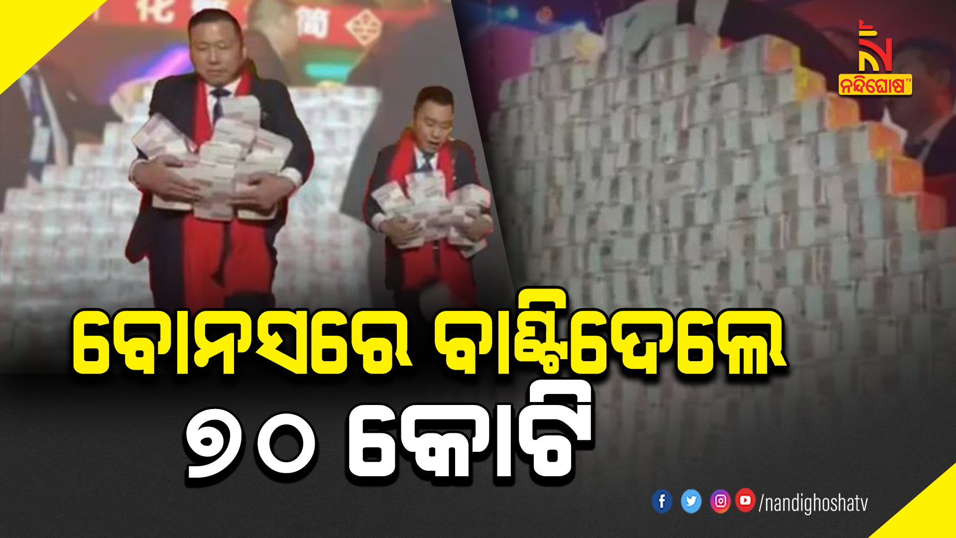 ସାଉଥ ଚାଇନା ମର୍ନିଂ ପୋଷ୍ଟର ଏକ ରିପୋର୍ଟ ଅନୁଯାୟୀ, ଚୀନ୍ର ହେନାନ ସହରରେ ଥିବା ଏକ କମ୍ପାନୀ ତାର କର୍ମଚାରୀଙ୍କୂ ଏପରି ବୋନସ ଦେଇଛି । କମ୍ପାନୀ କ୍ରେନ୍ ଉତ୍ପାଦନ କରିଥାଏ । କର୍ମଚାରୀଙ୍କୁ କମ୍ପାନୀ ବେନସରେ ୭୦ କୋଟି ଟଙ୍କା ଦେଇଛି । କମ୍ପାନୀର ୩୦ରୁ ଅଧିକ କର୍ମଚାରୀଙ୍କୁ ୩କୋଟିରୁ ଅଧିକ ଟଙ୍କା ଦିଆଯାଇଛି । ମୋଟ ୪୦ ଜଣ କର୍ମଚାରୀ ବୋନସ ନେଇଛନ୍ତି । ବୋନସ କାର୍ଯ୍ୟକ୍ରମରେ କର୍ମଚାରୀଙ୍କ ପରିବାର ସଦସ୍ୟଙ୍କ ପାଇଁ ଏକ ପ୍ରତିଯୋଗିତା ଅନୁଷ୍ଠିତ ହୋଇଥିଲା ଯେଉଁଥିରେ ସେମାନଙ୍କୁ ନିର୍ଦ୍ଦିଷ୍ଟ ସମୟରେ ନୋଟ୍ ଗଣିବାକୁ ପଡୁଥିଲା । ଏଥିପାଇଁ ୧୪ କୋଟି ଟଙ୍କା ଖର୍ଚ୍ଚ ହୋଇଛି ।