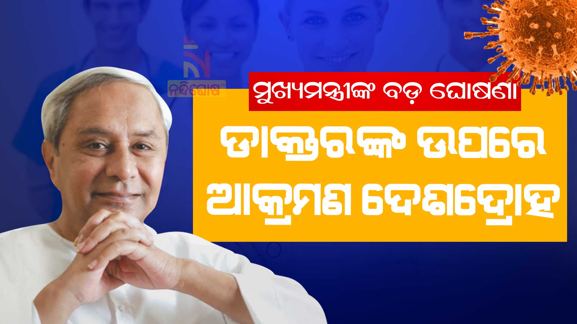 ଭୁବନେଶ୍ୱର : କରୋନା ବିରୋଧରେ ଯୁଦ୍ଧ ଭିତରେ ମୁଖ୍ୟମନ୍ତ୍ରୀ ବଡ ଧରଣର ଘୋଷଣା କରିଛନ୍ତି । ମୁଖ୍ୟମନ୍ତ୍ରୀ ଆଜି କରୋନା ବିରୋଧୀ ଲଢେଇରେ ଫ୍ରଣ୍ଟଲାଇନରେ ଥିବା ଡାକ୍ତର ଓ ଅନ୍ୟ ସ୍ୱାସ୍ଥ୍ୟକର୍ମୀଙ୍କ ଉଦ୍ଦେଷ୍ୟରେ ଭିଡିଓ ବାର୍ତ୍ତା ଦେଇଛନ୍ତି । ମୁଖ୍ୟମନ୍ତ୍ରୀ କହିଛନ୍ତି ଯେ, ଡାକ୍ତର ଓ ସ୍ୱାସ୍ଥ୍ୟକର୍ମୀଙ୍କ ଉପରେ ଆକ୍ରମଣକୁ ଦେଶଦ୍ରୋହ ଭାବେ ଗଣନା କରାଯିବ । ଏହାସହ ସ୍ୱାସ୍ଥ୍ୟକର୍ମୀଙ୍କ ପାଇଁ ସେ ୫୦ ଲକ୍ଷ ଟଙ୍କାର ବୀମା କଥା ମଧ୍ୟ କହିଛନ୍ତି । ସ୍ୱାସ୍ଥ୍ୟସେବା ଯୋଗାଇ ଦେବା କାଳରେ ସ୍ୱାସ୍ଥ୍ୟକର୍ମୀ,ଡାକ୍ତରଙ୍କ ମୃତ୍ୟୁ ଘଟିଲେ ସେମାନଙ୍କ ପରିବାରକୁ ପୁର୍ଣ୍ଣ ଦରମା ଓ ପେନସନ୍ ମିଳିବ ବୋଲି ସେ ଘୋଷଣା କରିଛନ୍ତି । ସେହିଭଳି ସେମାନଙ୍କ ଶେଷକୃତ୍ୟ ରାଷ୍ଟ୍ରୀୟ ସମ୍ମାନ ସହ କରାଯିବ ।