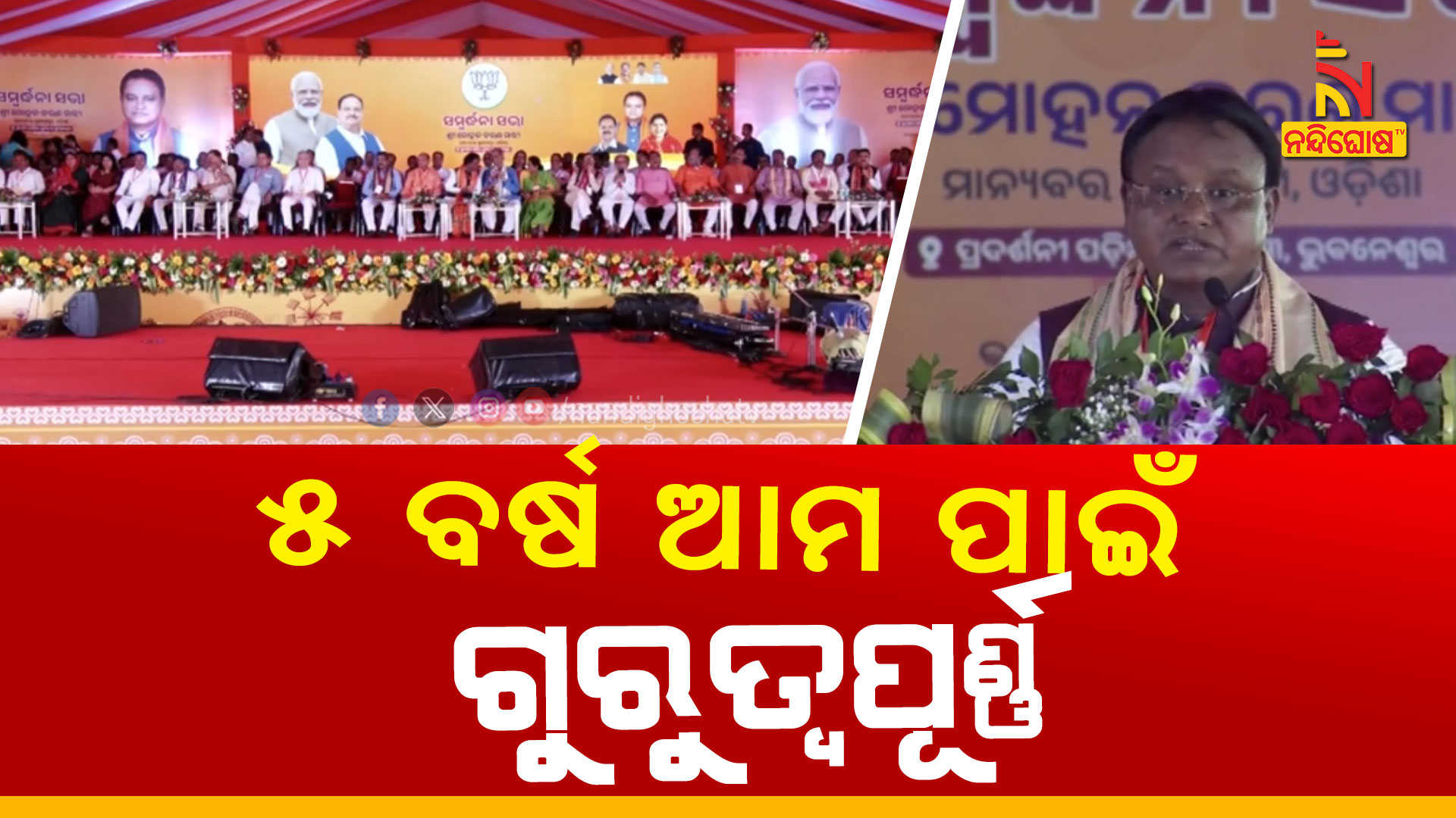ଭୁବନେଶ୍ବର: ଜାତୀୟ ରାଜନୀତିରେ ଓଡ଼ିଶା ଏବେ କେନ୍ଦ୍ରବିନ୍ଦୁ ପାଲଟିଛି । ସାରା ଦେଶର ନଜର ଏବେ ଓଡ଼ିଶା ଉପରେ ରହିଛି । ଆସନ୍ତା ୨୫ ବର୍ଷ ପାଇଁ ବିକାଶର ଖସଡା ପ୍ରସ୍ତୁତ ହୋଇଥିବା ବେଳେ ଏହି ପାଞ୍ଚ ବର୍ଷ ଆମ ସରକାର ପାଇଁ ଗୁରୁତ୍ବପୂର୍ଣ୍ଣ ବୋଲି କହିଛନ୍ତି ମୁଖ୍ୟମନ୍ତ୍ରୀ ମୋହନ ଚରଣ ମାଝି ।