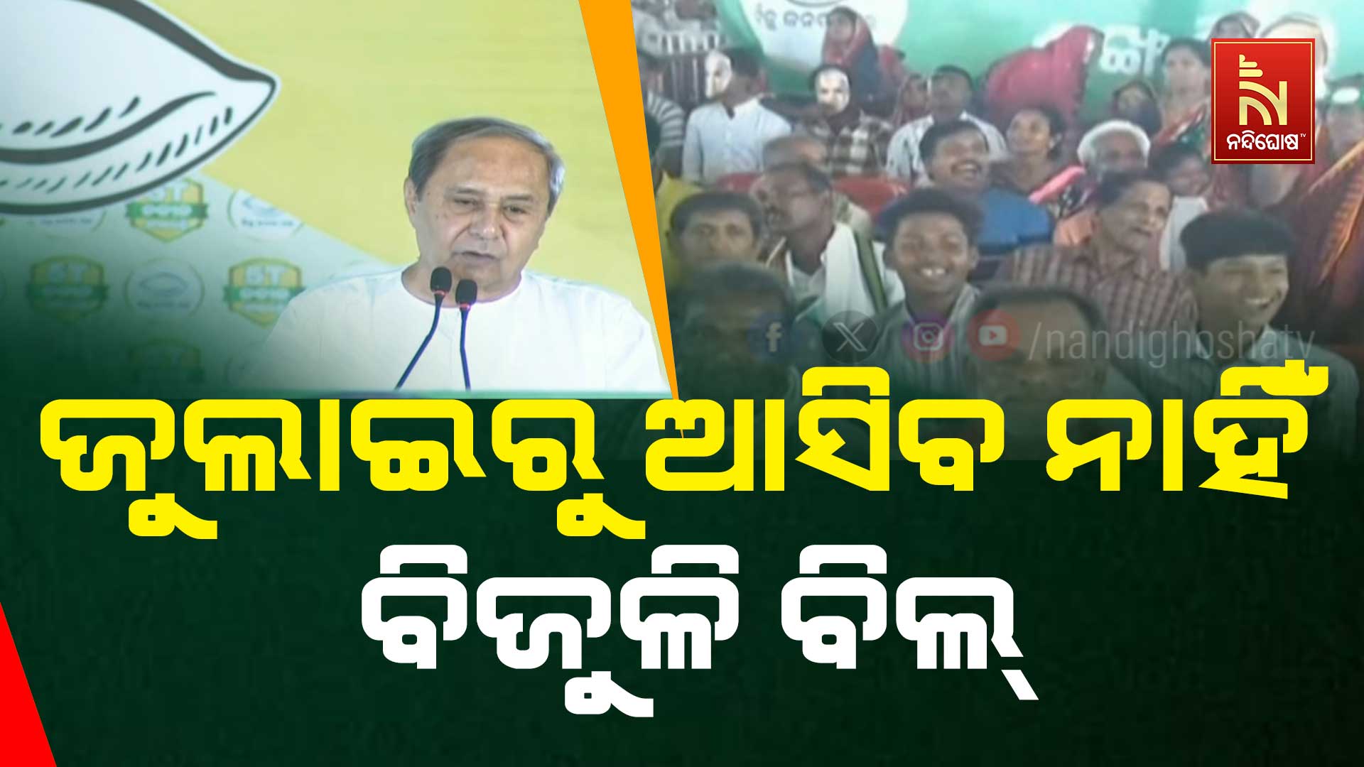 ରାଉରକେଲା: ଜୁଲାଇ ମାସରୁ ଆଉ ବିଜୁଳି ବିଲ ଦେବାକୁ ପଡିବନି। ରାଉରକେଲାରେ ମୁଖ୍ୟମନ୍ତ୍ରୀଙ୍କ ଏହି ଘୋଷଣା କରିବା ସହ ବିରୋଧୀ ଦଳ ମିଛ କଥା କହୁଛନ୍ତି ଓ କୁମ୍ଭୀର କାନ୍ଦଣା କାନ୍ଦୁଛନ୍ତି ବୋଲି କହିଛନ୍ତି ମୁଖ୍ୟମନ୍ତ୍ରୀ ନବୀନ ପଟ୍ଟନାୟକ। ରାଉରକେଲାରେ ବିଜେଡି ପ୍ରାର୍ଥୀଙ୍କ ପାଇଁ ଆଜି ପ୍ରଚାର ମୈଦାନକୁ ଓହ୍ଲାଇଛନ୍ତି ନବୀନ ପଟ୍ଟନାୟକ।