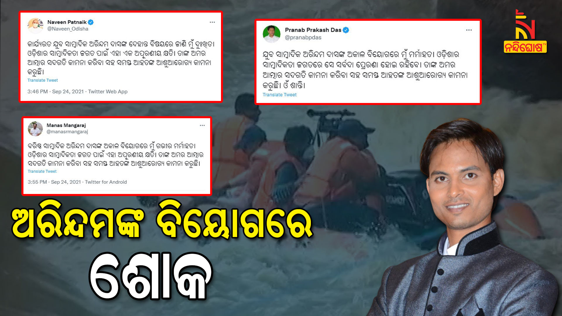 ଅନ୍ୟପକ୍ଷରେ ରାଜ୍ୟ ସରକାରଙ୍କ ଗଣମାଧ୍ୟମ ପରାମର୍ଶଦାତା ତଥା ବିଜୁ ଜନତା ଦଳ ସାଧାରଣ ସମ୍ପାଦକ (ଗଣମାଧ୍ୟମ ବ୍ୟାପାର) ମାନସ ମଙ୍ଗରାଜ ମଧ୍ୟ ଅରିନ୍ଦମଙ୍କ ବିୟୋଗରେ ଶୋକ ବ୍ୟକ୍ତ କରିଛନ୍ତି । ଅରନ୍ଦମଙ୍କ ବିୟୋଗ ତାଙ୍କୁ ଗଭୀର ଭାବେ ମର୍ମାହାତ କରିଥିବା ସହ ଏହା ସାମ୍ୱାଦିକତା ଜଗତ ପାଇଁ ଅପୂରଣୀୟ କ୍ଷତି ବୋଲି ସେ ଟ୍ୱିଟ୍ ଯୋଗେ ପ୍ରକାଶ କରିଛନ୍ତି । ଏଥିସହିତ ଅନ୍ୟ ଆହାତଙ୍କ ଆଶୁ ଆରୋଗ୍ୟ କାମନା କରିଛନ୍ତି ।