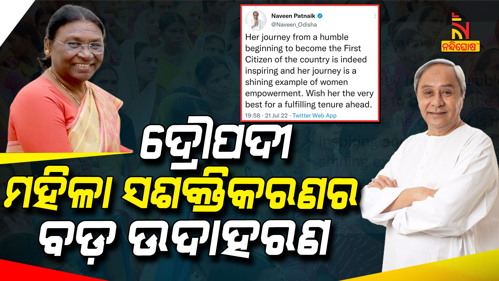 ଟ୍ବିଟ୍ କରି ମୁଖ୍ୟମନ୍ତ୍ରୀ ଲେଖିଛନ୍ତି, ‘ବିନମ୍ର ଆରମ୍ଭରୁ ଦେଶର ପ୍ରଥମ ନାଗରିକ ହେବା ପର୍ଯ୍ୟନ୍ତ ତାଙ୍କର ଯାତ୍ରା ପ୍ରେରଣାଦାୟକ ଓ ଏହି ଯାତ୍ରା ମହିଳା ସଶକ୍ତିକରଣର ଏକ ଉଜ୍ଜ୍ୱଳ ଉଦାହରଣ । ଆଗକୁ ପୂର୍ଣ୍ଣ କାର୍ଯ୍ୟକଳା ପାଇଁ ତାଙ୍କୁ ଶୁଭକାମନା ।
