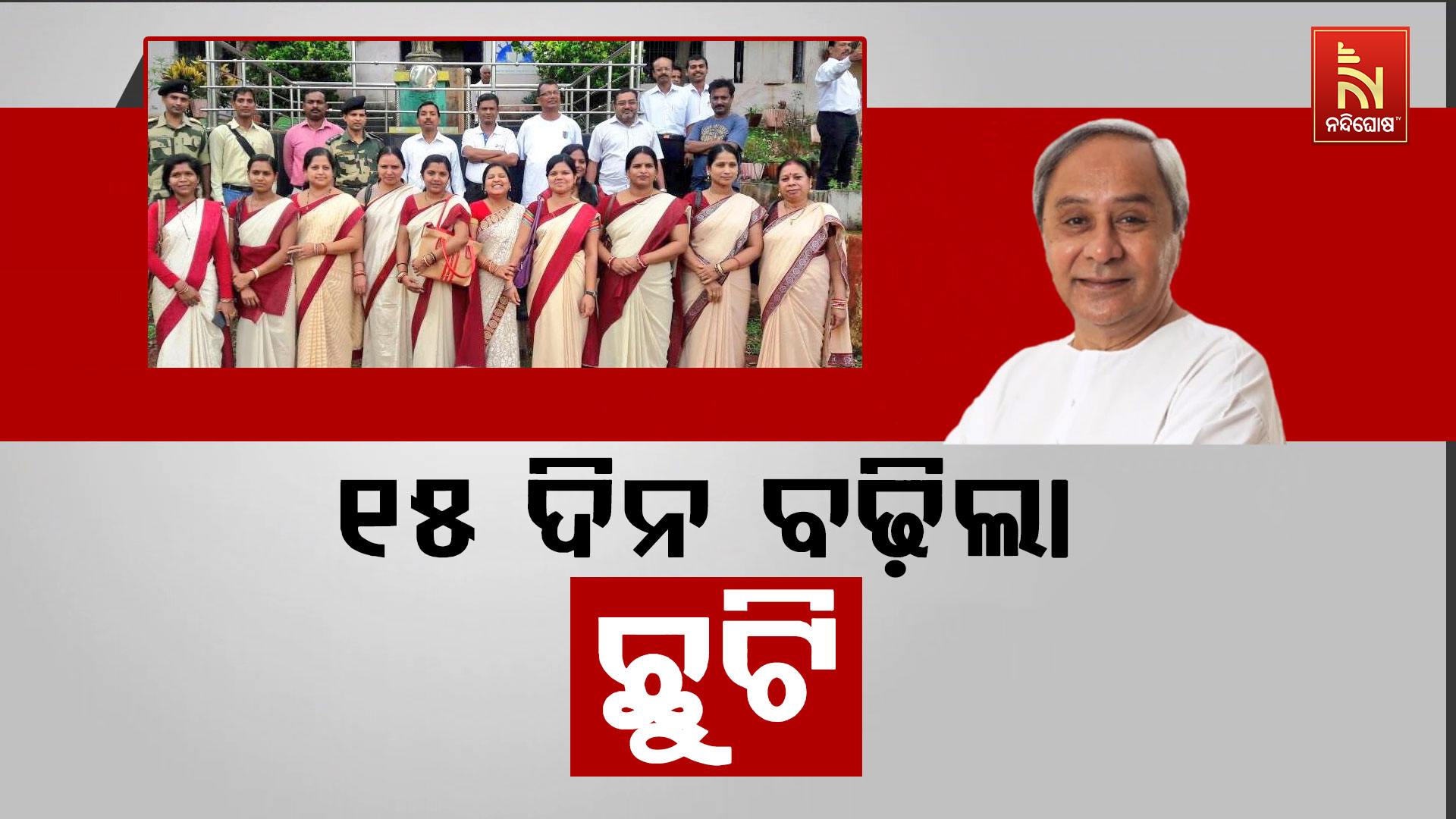 ରାଜ୍ୟର ସମସ୍ତ ନୂତନ ଅନୁଦାନ ପ୍ରାପ୍ତ ଶିକ୍ଷାନୁଷ୍ଠାନର କର୍ମଚାରୀଙ୍କ ପାଇଁ ବର୍ଷକୁ ୧୫ ଦିନ ସାମୟିକ ଛୁଟି ଓ ମହିଳା କର୍ମଚାରୀଙ୍କ ପାଇଁ ସବୈତନିକ ପ୍ରସୂତିକାଳୀନ ଛୁଟି ଘୋଷଣା କରିଛନ୍ତି ମୁଖ୍ୟମନ୍ତ୍ରୀ ନବୀନ ପଟ୍ଟନାୟକ ।
