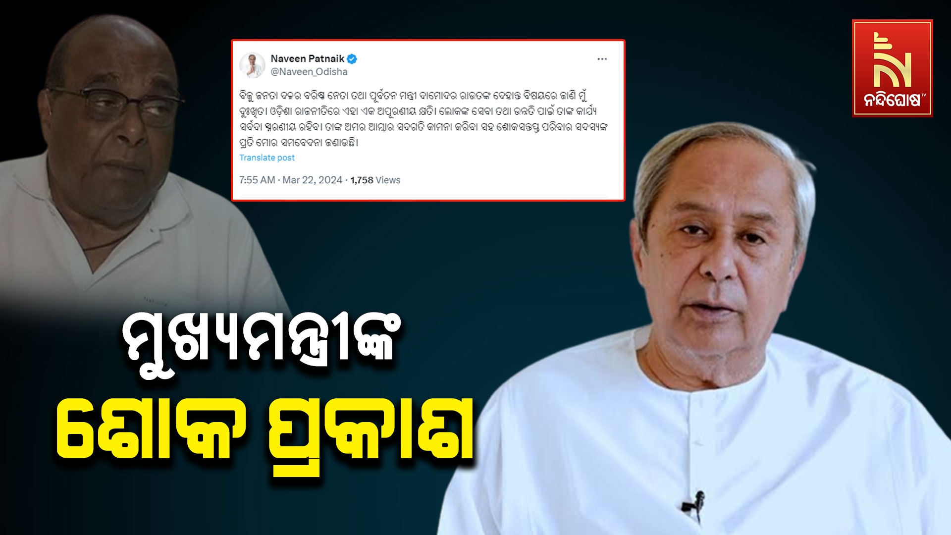 ବିଜୁ ଜନତା ଦଳର ବରିଷ୍ଠ ନେତା ତଥା ପୂର୍ବତନ ମନ୍ତ୍ରୀ ଦାମୋଦର ରାଉତଙ୍କ ଦେହାନ୍ତ ବିଷୟରେ ଜାଣି ମୁଁ ଦୁଃଖିତ। ଓଡ଼ିଶା ରାଜନୀତିରେ ଏହା ଏକ ଅପୂରଣୀୟ କ୍ଷତି। ଲୋକଙ୍କ ସେବା ତଥା ଉନ୍ନତି ପାଇଁ ତାଙ୍କ କାର୍ଯ୍ୟ ସର୍ବଦା ସ୍ମରଣୀୟ ରହିବ। ତାଙ୍କ ଅମର ଆତ୍ମାର ସଦଗତି କାମନା କରିବା ସହ ଶୋକସନ୍ତପ୍ତ ପରିବାର ସଦସ୍ୟଙ୍କ ପ୍ରତି ମୋର ସମବେଦନା…