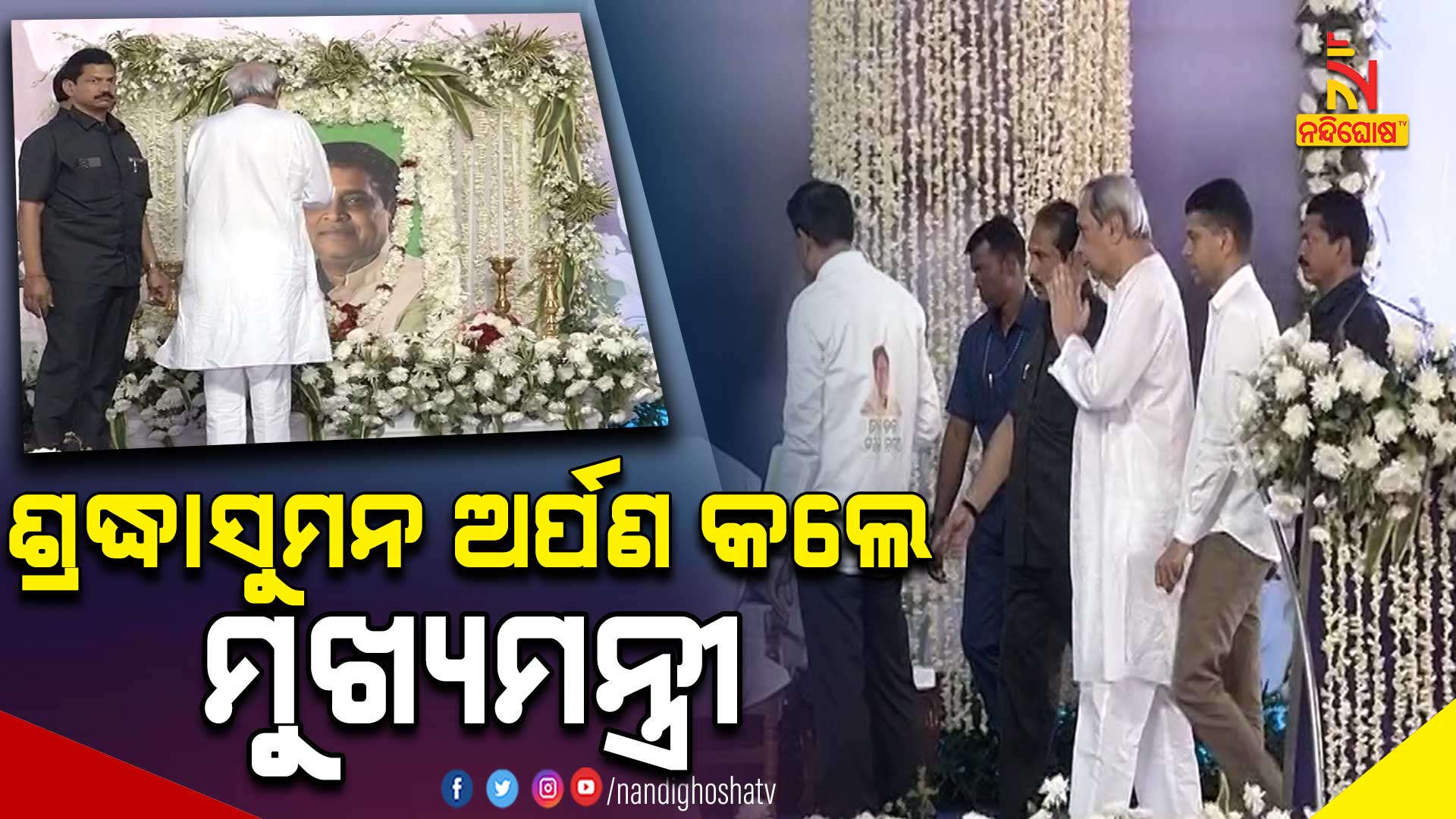 ଝାରସୁଗୁଡ଼ା : ଆଜି ସ୍ବର୍ଗତ ନବକିଶୋର ଦାସଙ୍କ ଦ୍ବାଦଶ କ୍ରିୟା । ଝାରସୁଗୁଡ଼ା ସରବାହାଲ ହାଇସ୍କୁଲ୍ ପଡ଼ିଆରେ ସ୍ୱର୍ଗତଃ ମନ୍ତ୍ରୀ ନବ ଦାସଙ୍କ ଶ୍ରଦ୍ଧାଞ୍ଜଳି ସଭା ଆୟୋଜନ କରାଯାଇଛି। ସ୍ମୃତିସଭାରେ ପହଞ୍ଚି ଦିବଂଗତ ନେତାଙ୍କୁ ଶ୍ରଦ୍ଧାଞ୍ଜଳି ଜଣାଇଥିଲେ ମୁଖ୍ୟମନ୍ତ୍ରୀ ନବୀନ ପଟ୍ଟନାୟକ । ତାଙ୍କ ପରିବାର ସଦସ୍ୟଙ୍କୁ ସମବେଦନା ଜଣାଇବା ସହ ନବଦାସଙ୍କ ଫଟୋଚିତ୍ରରେ ଶ୍ରଦ୍ଧାସୁମନ ଅର୍ପଣ କରିଥିଲେ ।