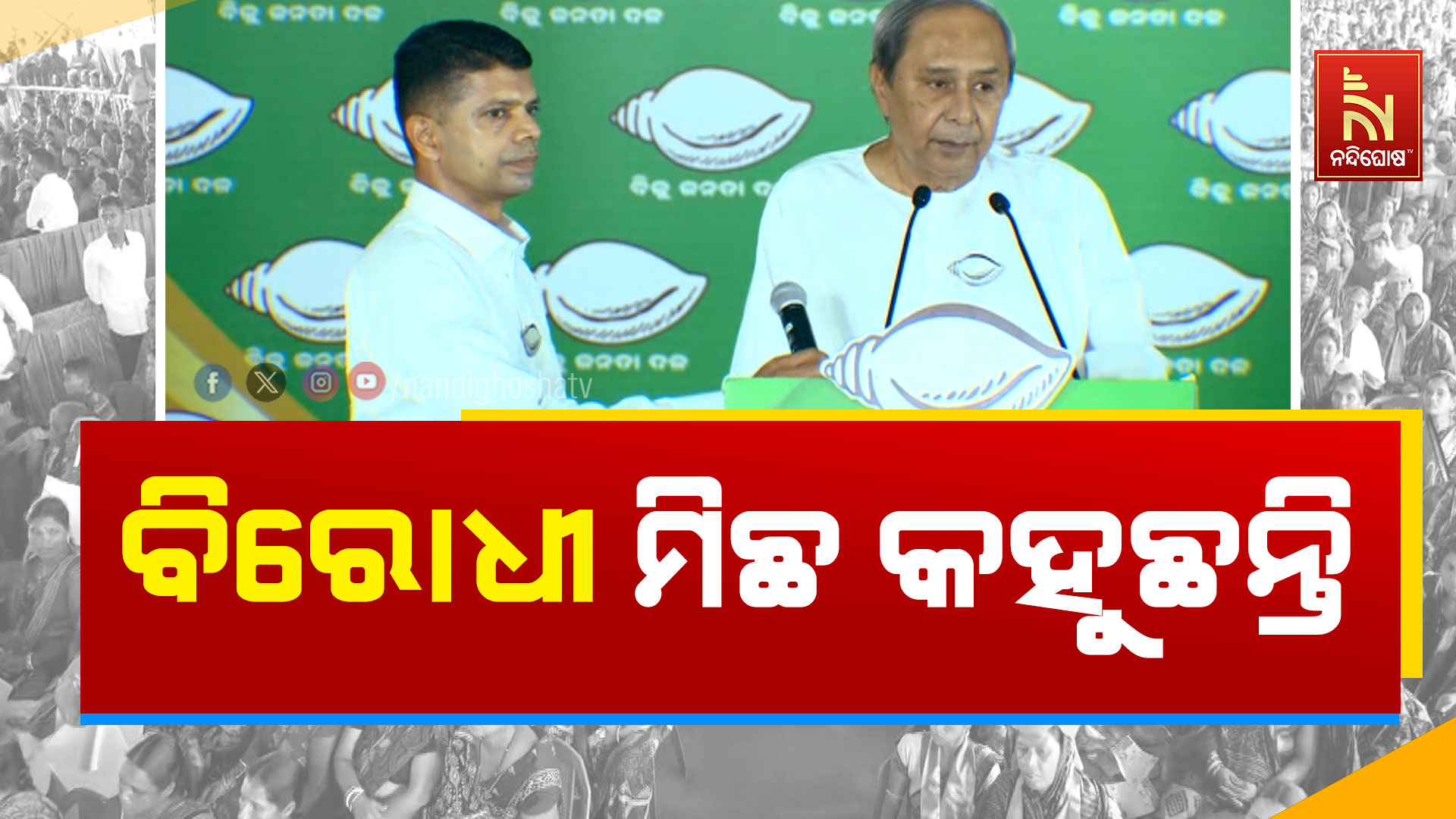 ସମ୍ବଲପୁର: ସମ୍ବଲପୁରରେ ମୁଖ୍ଯମନ୍ତ୍ରୀ ତଥା ବିଜେଡି ସୁପ୍ରିମୋ ନବୀନ ପଟ୍ଟନାୟକଙ୍କ ପ୍ରଚାର । ଦଳୀୟ ପ୍ରାର୍ଥୀଙ୍କ ପାଇଁ ପ୍ରଚାର କରି ମୁଖ୍ଯମନ୍ତ୍ରୀ ନବୀନ ପଟ୍ଟନାୟକ ବିରୋଧୀଙ୍କୁ ସମାଲୋଚନା କରିଛନ୍ତି । କହିଛନ୍ତି, ବିରୋଧୀ ଦଳ ନେତାମାନେ ମିଛ କହୁଛନ୍ତି । ରାଜ୍ଯ ହିତ ଲାଗି କୁମ୍ଭୀର କାନ୍ଦଣା କାନ୍ଦୁଛନ୍ତି । ତେଣୁ ବିଜେଡିର ପ୍ରାର୍ଥୀମାନଙ୍କୁ ଚିହ୍ନି ଶଂଖ ଚିହ୍ନରେ ଭୋଟ ଦେବାକୁ ସେ ଅପିଲ କରିଛନ୍ତି ।