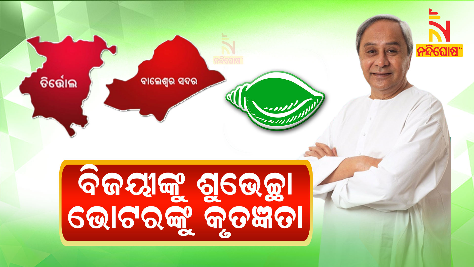 ଭୁବନେଶ୍ୱର: ବାଲେଶ୍ୱର ସଦରଏବଂ ତିର୍ତ୍ତୋଲ ବିଧାନସଭା ଆସନରେ ବିଜୟୀ ହେବା ପରେ ଭୋଟରଙ୍କୁ କୃତଜ୍ଞତା ଜଣାଇଛନ୍ତି ମୁଖ୍ୟମନ୍ତ୍ରୀ ତଥା ବିଜେଡି ସଭାପତି ନବୀନ ପଟ୍ଟନାୟକ । ସେ ବିଜୟୀ ହୋଇଥିବା ସ୍ୱରୂପ ଦାସ ଏବଂ ବିଜୟ ଶଙ୍କର ଦାସଙ୍କୁ ଟୁଇଟ୍ କରି ଶୁଭେଚ୍ଛା ଜଣାଇଛନ୍ତି ।