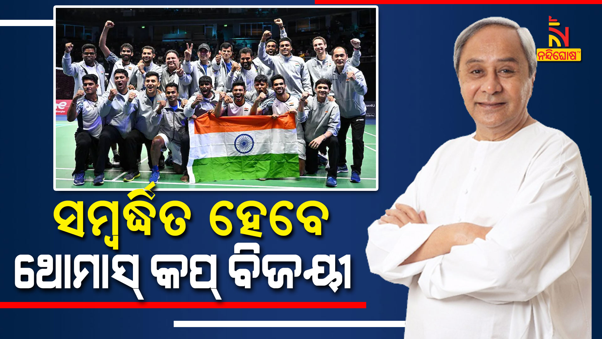 ଭୁବନେଶ୍ୱର: ଥୋମାସ କପ ବିଜୟୀ ଭାରତୀୟ ଦଳକୁ ଆଜି ସ୍ୱାଗତ କରିବ ଓଡ଼ିଶା । ଥୋମାସ କପ ବିଜେତା ଭାରତୀୟ ପୁରୁଷ ବ୍ୟାଡମିନଟନ ଟିମର ପ୍ରତି ଖେଳାଳିଙ୍କୁ ସମ୍ବର୍ଦ୍ଧିତ କରିବେ ମୁଖ୍ୟମନ୍ତ୍ରୀ ନବୀନ ପଟ୍ଟନାୟକ । ଲୋକସେବା ଭବନ କନଭେନସନ ସେଣ୍ଟର ଠାରେ ଏକ ଭବ୍ୟ ସମ୍ବର୍ଦ୍ଧନା ଉତ୍ସବ ଆୟୋଜିତ ହୋଇଛି । ଏହି ଉତ୍ସବରେ ପୂର୍ବତନ ବ୍ୟାଡମିଟନ ଖେଳାଳି ପୁଲେଲା ଗୋପିଚାନ୍ଦଙ୍କ ସମେତ ଭାରତୀୟ ବ୍ୟାଡମିଣ୍ଟନ ଦଳକୁ ସମ୍ବର୍ଦ୍ଧିତ କରାଯିବାର କାର୍ଯ୍ୟକ୍ରମ ରହିଛି । ୧୪ ଥର ଥୋମାସ କପ ବିଜେତା ଇଣ୍ଡୋନେସିଆକୁ ପରାସ୍ତ କରି ଟାଇଟଲ ହାସଲ କରିଥିଲା ଭାରତୀୟ ପୁରୁଷ ବ୍ୟାଡମିନଟନ ଟିମ ।