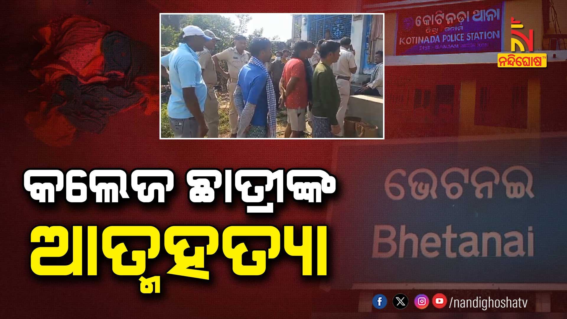 ଗଞ୍ଜାମ : ଆସିକା କୋଟିନାଡ଼ା ଥାନା ଅନ୍ତର୍ଗତ ଭେଟନଈ ଗାଁରେ ଛାତ୍ରୀଙ୍କ ଆତ୍ମହତ୍ୟା । ପେଟ୍ରୋଲ ଢ଼ାଳି ଛାତ୍ରୀ ଜଣଙ୍କ ଆତ୍ମହତ୍ୟା କରିଛନ୍ତି। ମୃତ ଛାତ୍ରୀ ହେଲେ ବାଲିପଦର ଅହଲ୍ୟା ଦେବୀ କଲେଜରେ ପ୍ରଥମ ବର୍ଷ ଛାତ୍ରୀ ପୂଜା ଗୌଡ଼ । ଘଟଣାସ୍ଥଳରେ ପୋଲିସ ପହଞ୍ଚି ତଦନ୍ତ ଚଳାଇଛି ।